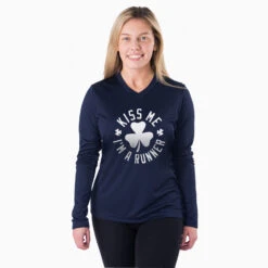 Women’s Long Sleeve Tech Tee – Kiss Me I Am A Runner Shamrock