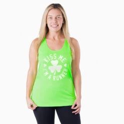 Women’s Racerback Performance Tank Top – Kiss Me I Am A Runner Shamrock