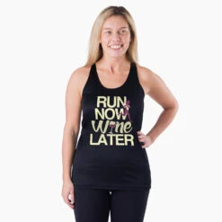 Women’s Racerback Performance Tank Top – Run Now Wine Later (Bold)