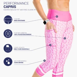 These performance capris are designed for your active lifestyle. The exclusive RunTechnology® performance fabric is designed to perform while providing ultimate comfort. The four-way stretch moisture wicking material, wide waistband, as well as the leg pockets for your essentials make these capris a top choice for athletes. These capris are equal parts function and fashion to fit any athletic activity and everyday active lifestyles.