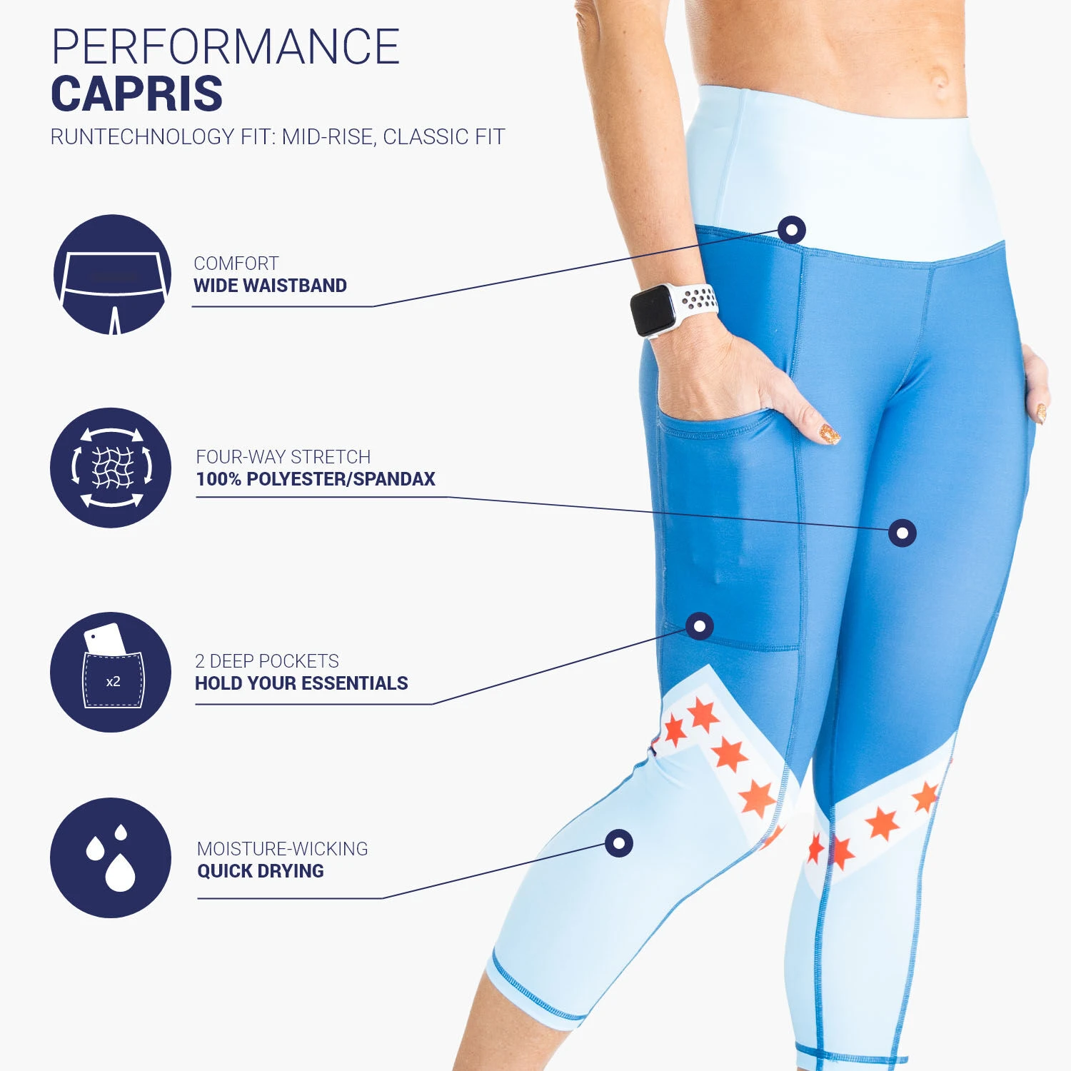 These performance capris are designed for your active lifestyle. The exclusive RunTechnologyยฎ performance fabric is designed to perform while providing ultimate comfort. The four-way stretch moisture wicking material, wide waistband, as well as the leg pockets for your essentials make these capris a top choice for athletes. These capris are equal parts function and fashion to fit any athletic activity and everyday active lifestyles.