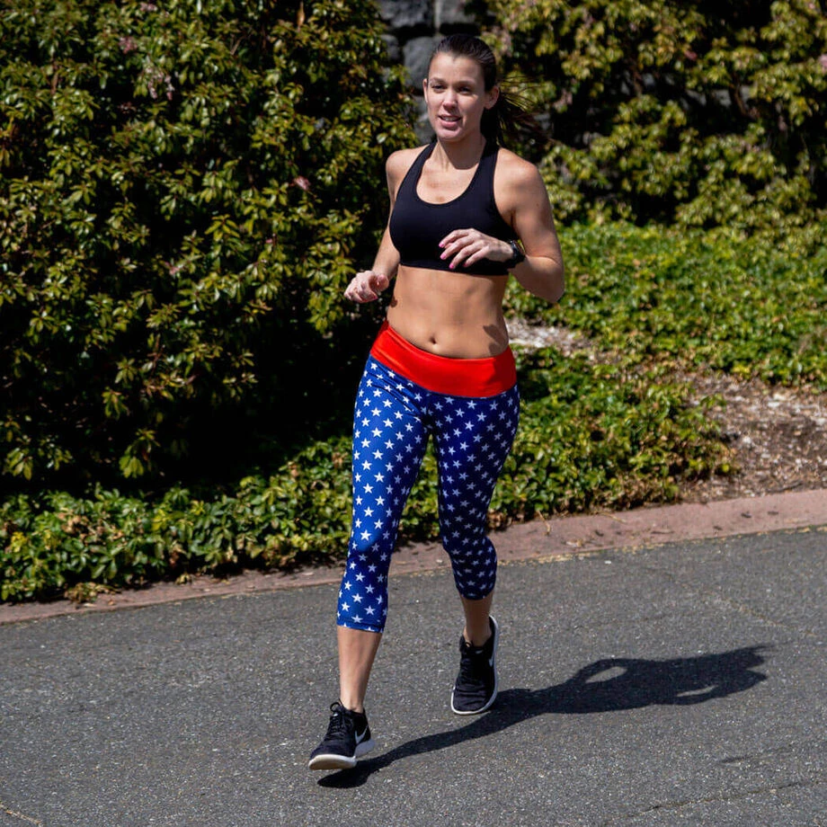 Run free in these lightweight and moisture-wicking running capri pants with an all-American design and a stretchy, comfortable fit for a great running gift. The capri pants are made from performance polyester with a four-way stretch for breathability and ease of movement – and have a wide comfort waistband with a zippered pocket in back. Just above the pocket, there is a “secret” message that reminds runners we run free because of the brave – making them the perfect running capris for patriotic runners who will love how the capri pants feel as they run as much as they love the look. Surprise a favorite runner with this fashionable and functional running gift they’ll be sure to put to good use for daily runs and races.