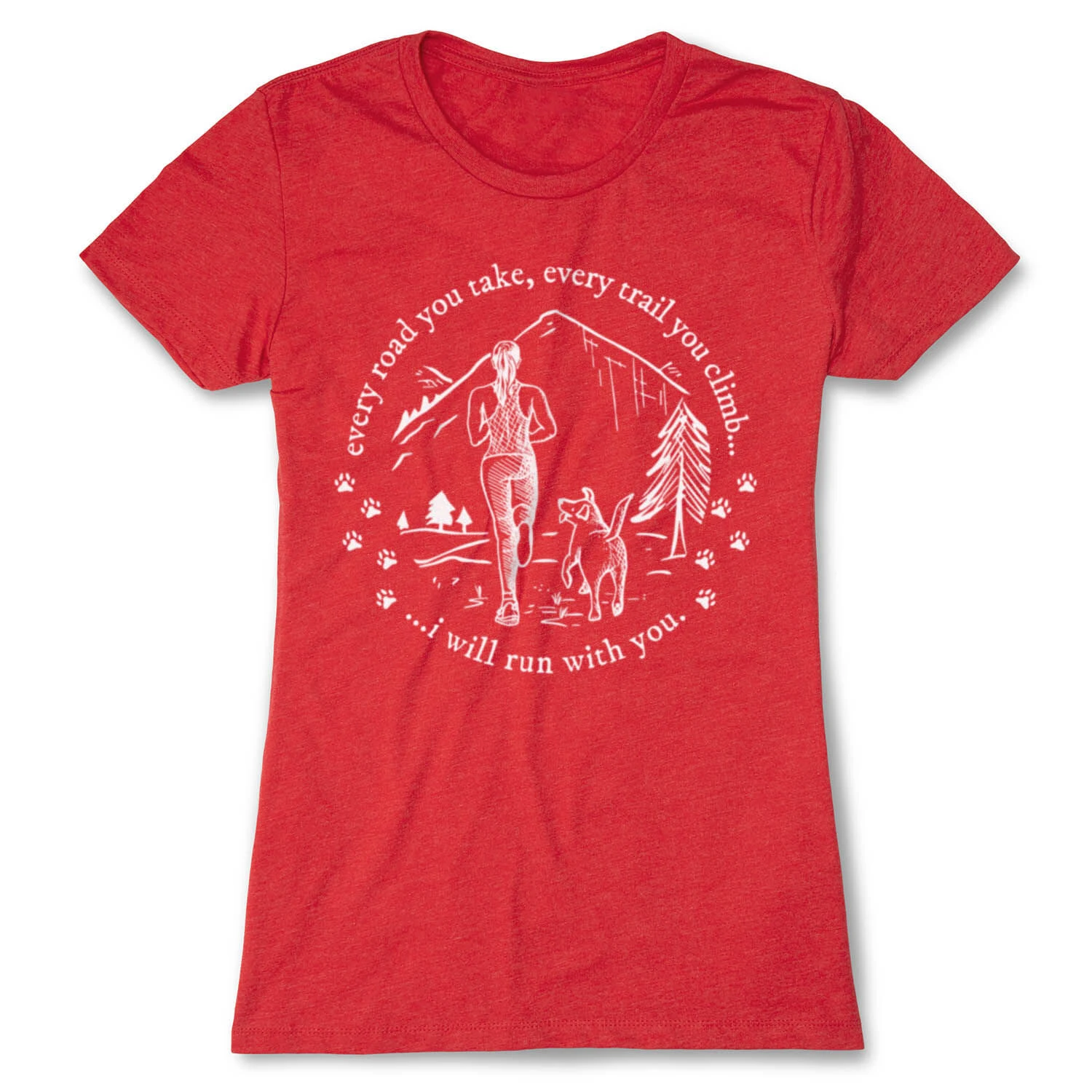 Show off your love for your fur best friend in our short sleeve tee featuring a dog themed design inspired by running. The slim-fitting tee is made from soft, lightweight, and slightly heathered material. Our everyday tee looks great when paired with any choice of bottoms from leggings and jeans to shorts. This stylish short sleeve tee is perfect for everyday wear and an ideal running gift for any occasion.