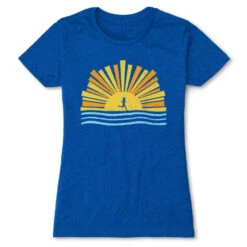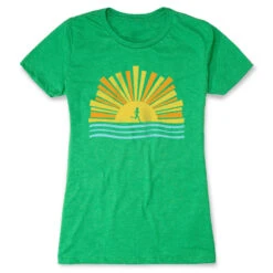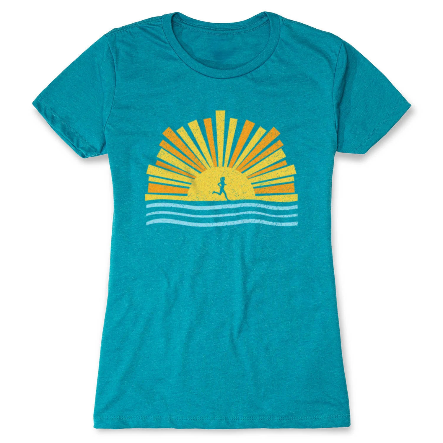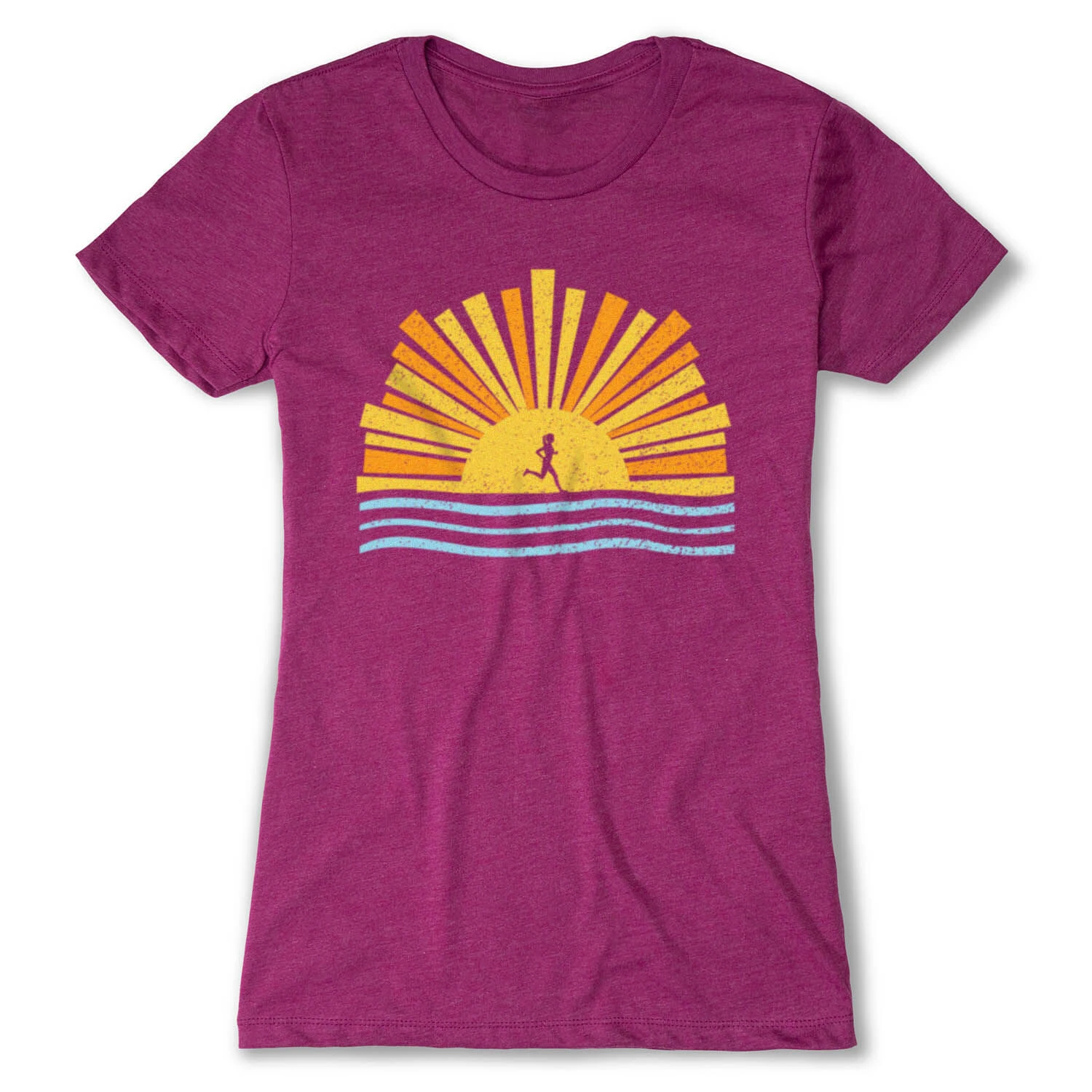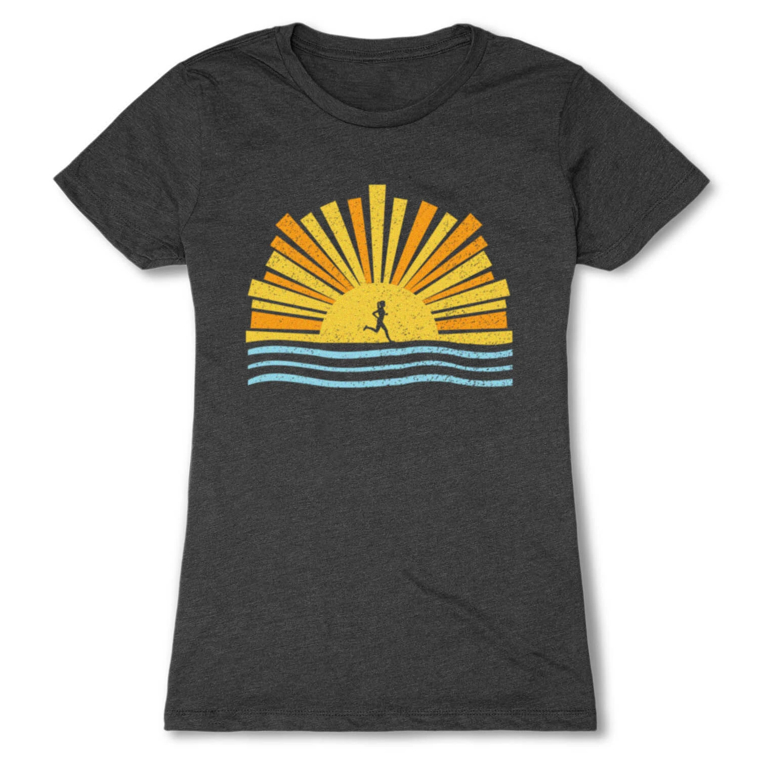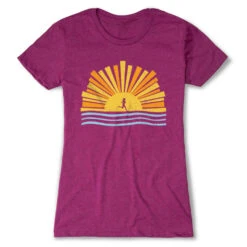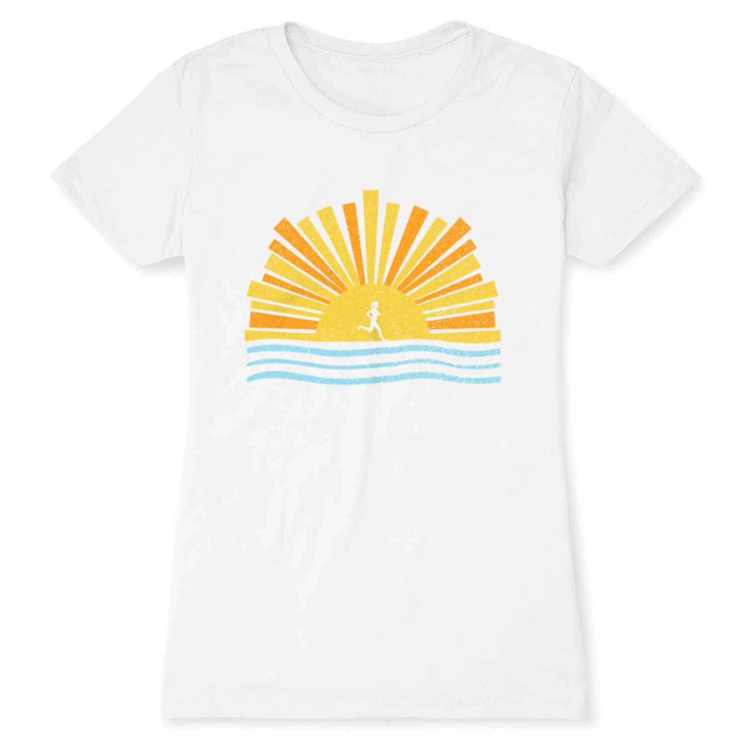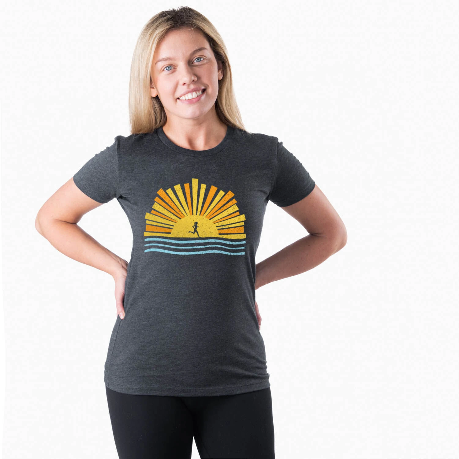Show off your runner pride in our short sleeve tee featuring a one-of-a-kind Here Comes The Sun design. The slim-fitting tee is made from soft, lightweight, and slightly heathered material. Our everyday tee looks great when paired with any choice of bottoms from leggings and jeans to shorts. This stylish short sleeve tee is perfect for everyday wear and an ideal running gift for any occasion. Enjoy your sunset runs in the most comfortable tee for runners.