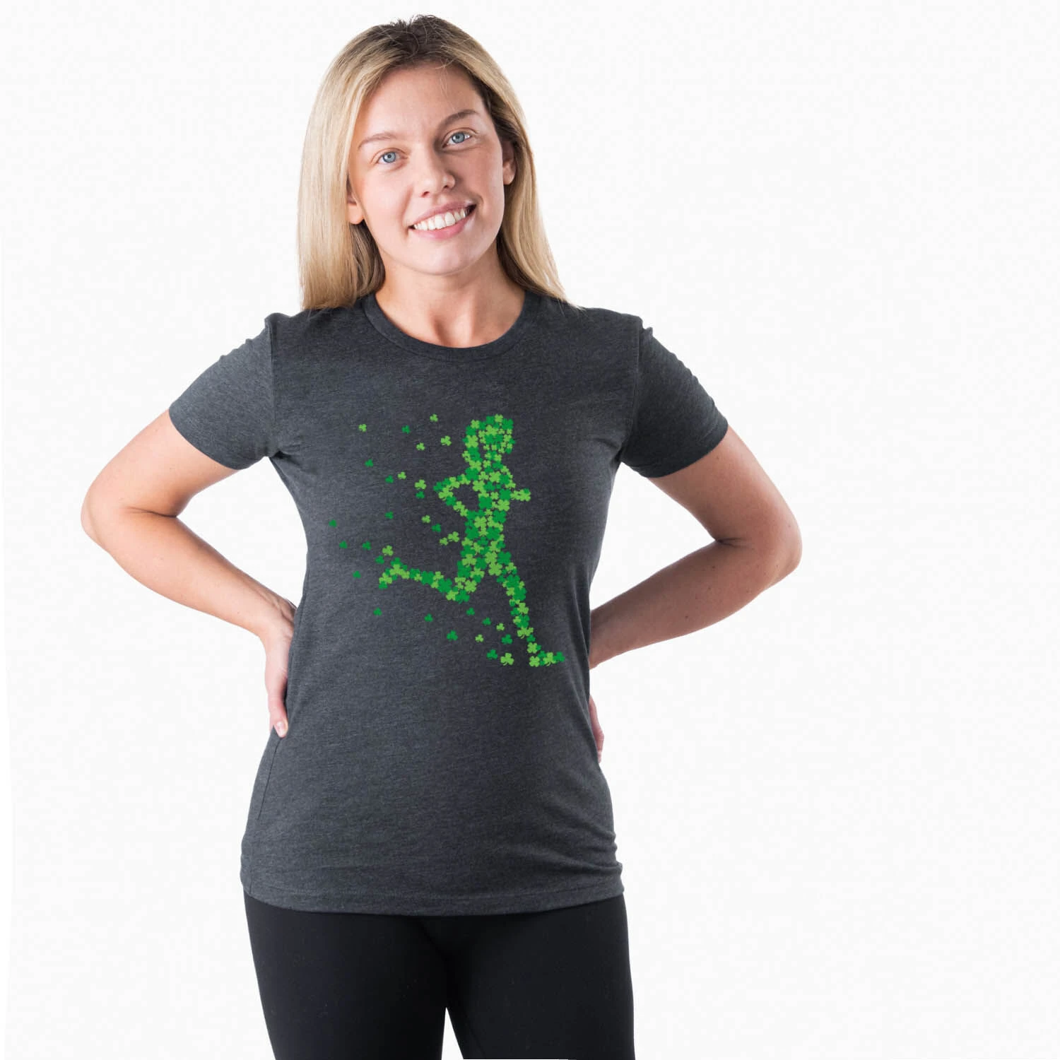 Celebrate St. Patrick’s Day in our short sleeve tee featuring our exclusive Clover Girl design. The slim-fitting tee is made from soft, lightweight, and slightly heathered material. Our everyday tee looks great when paired with any choice of bottoms from leggings and jeans to shorts. This stylish short sleeve tee is perfect for St. Paddy’s festivities, everyday wear, and an ideal gift for any runner girl.