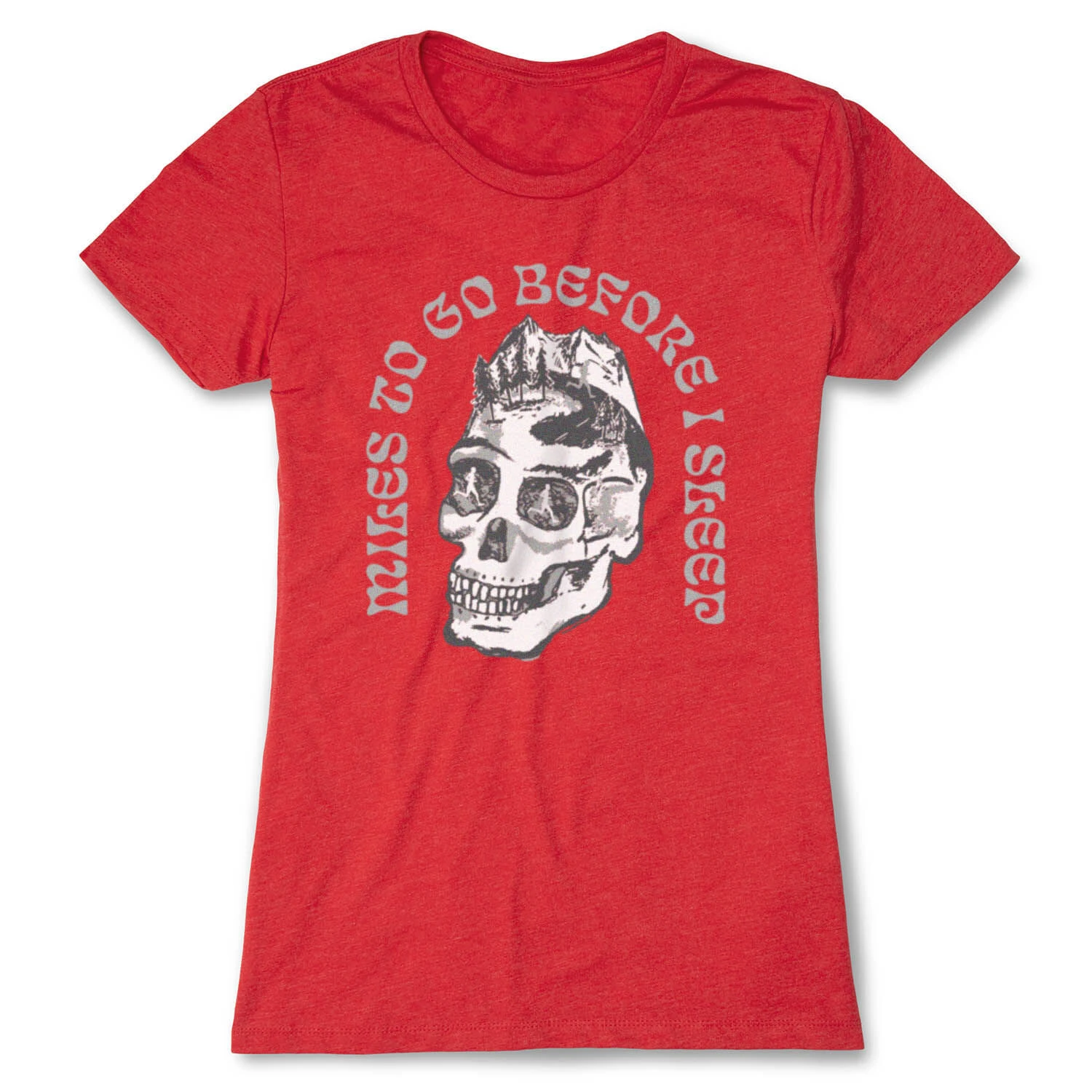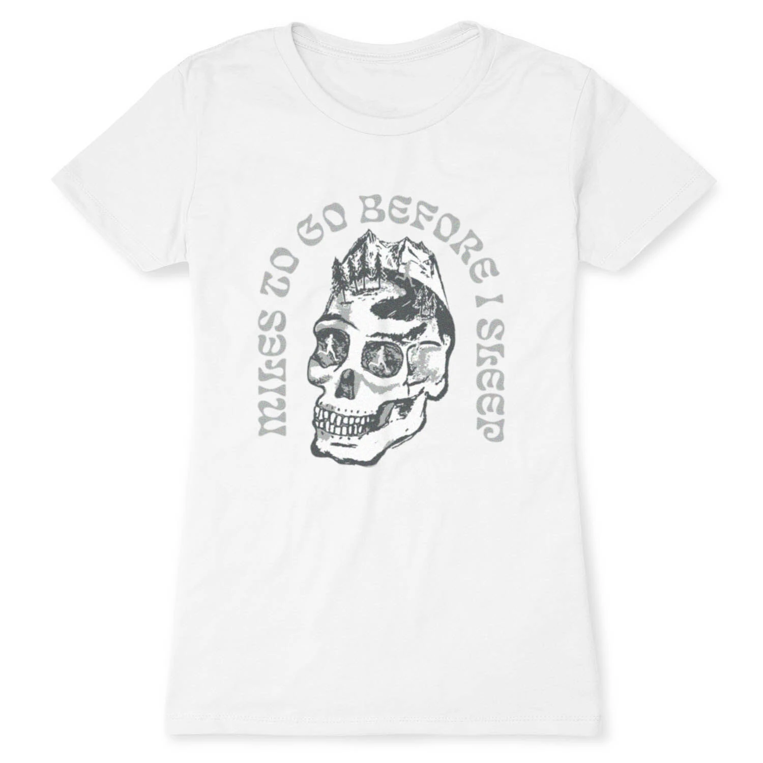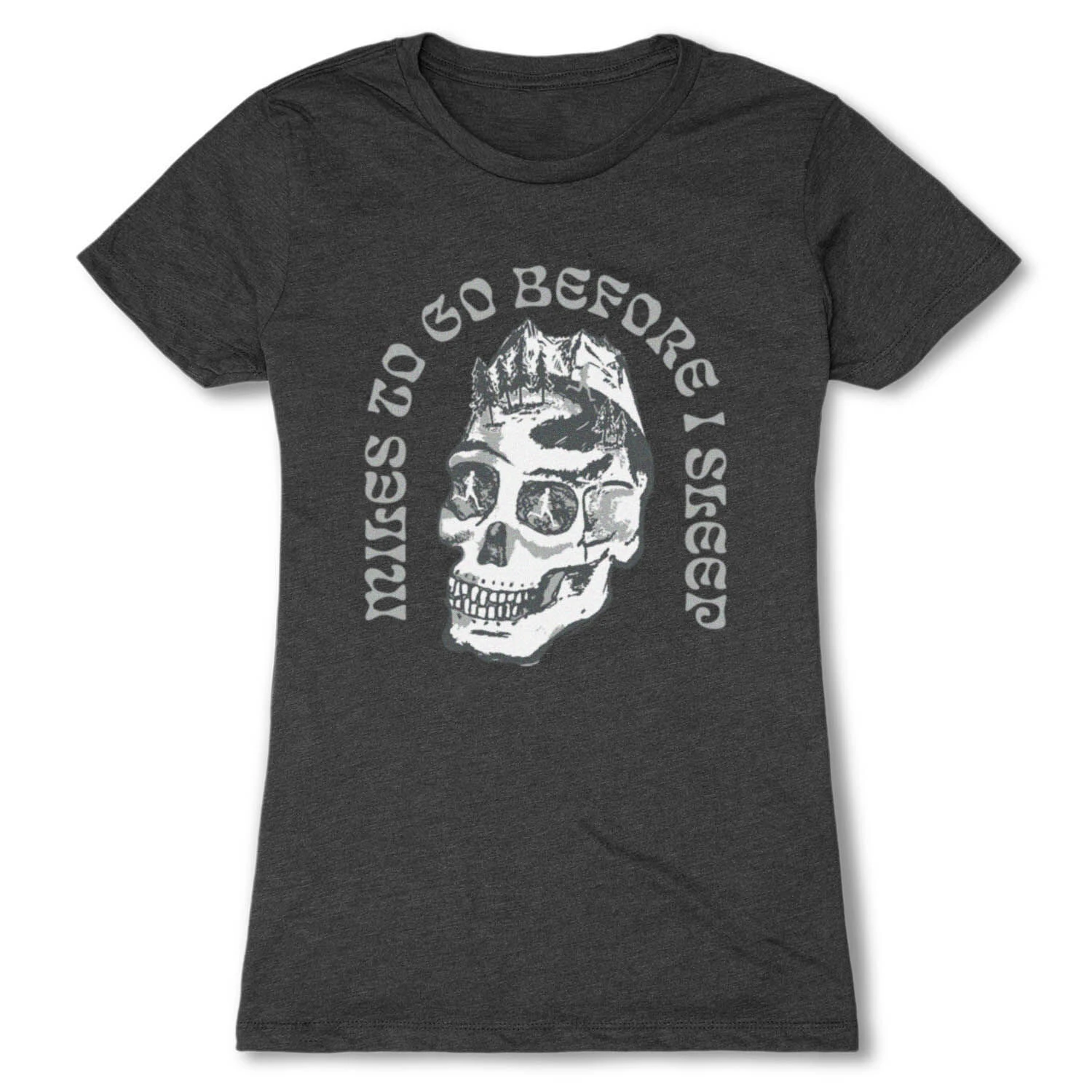 Show off your runner pride in our short sleeve tee featuring our exclusive Miles To Go Before I Sleep Skull design. The slim-fitting tee is made from soft, lightweight, and slightly heathered material. Our everyday tee looks great when paired with any choice of bottoms from leggings and jeans to shorts. This stylish short sleeve tee is perfect for everyday wear and an ideal running gift for any occasion.