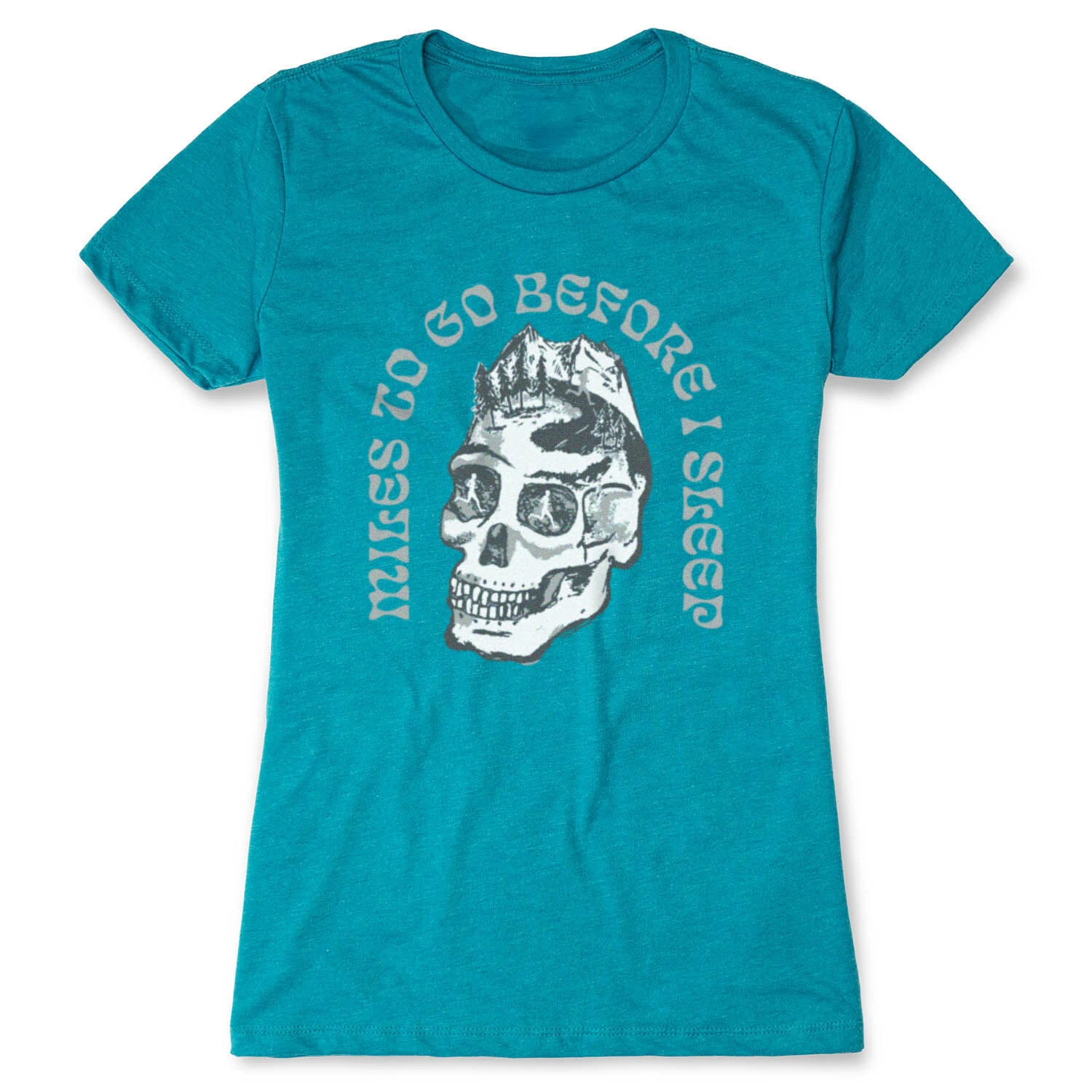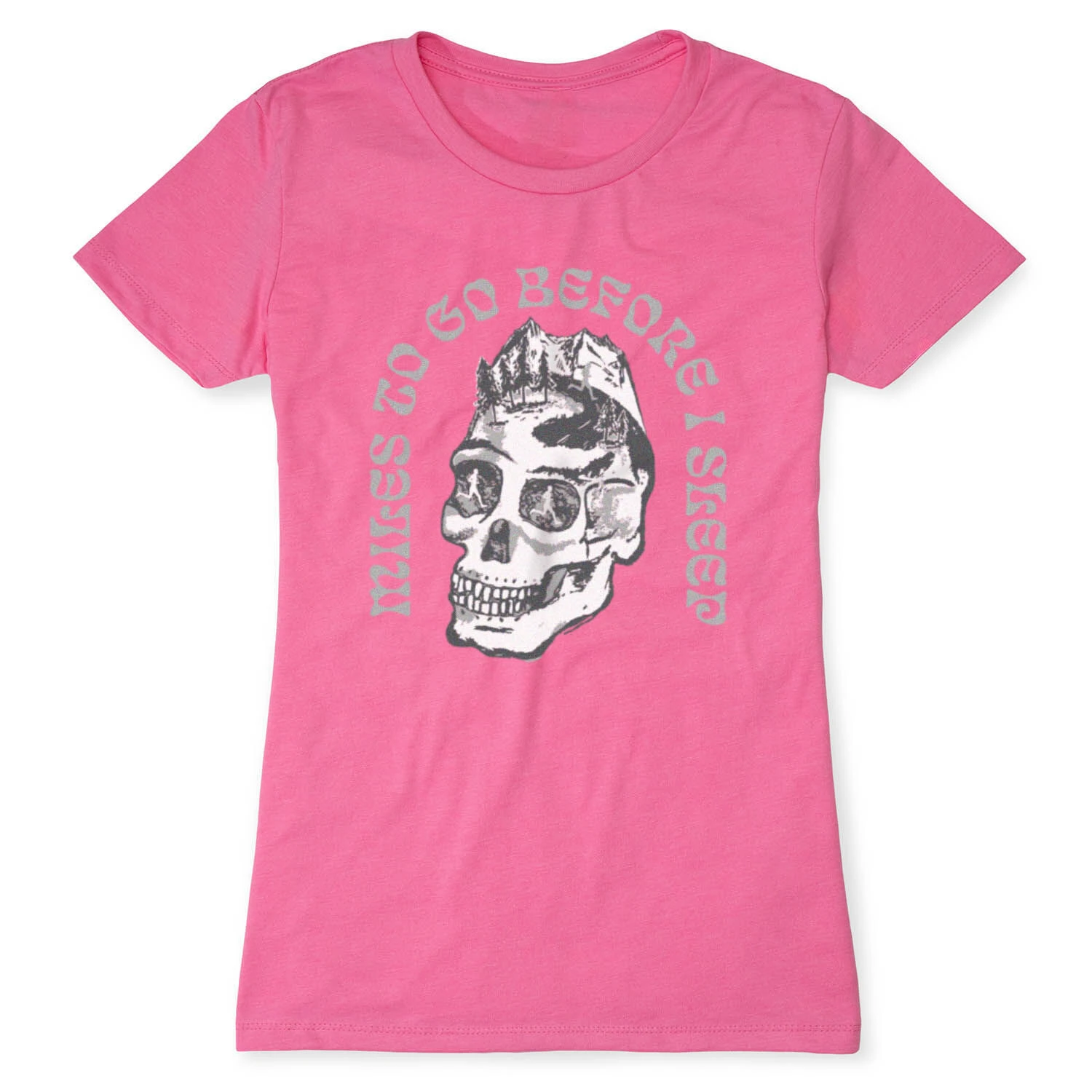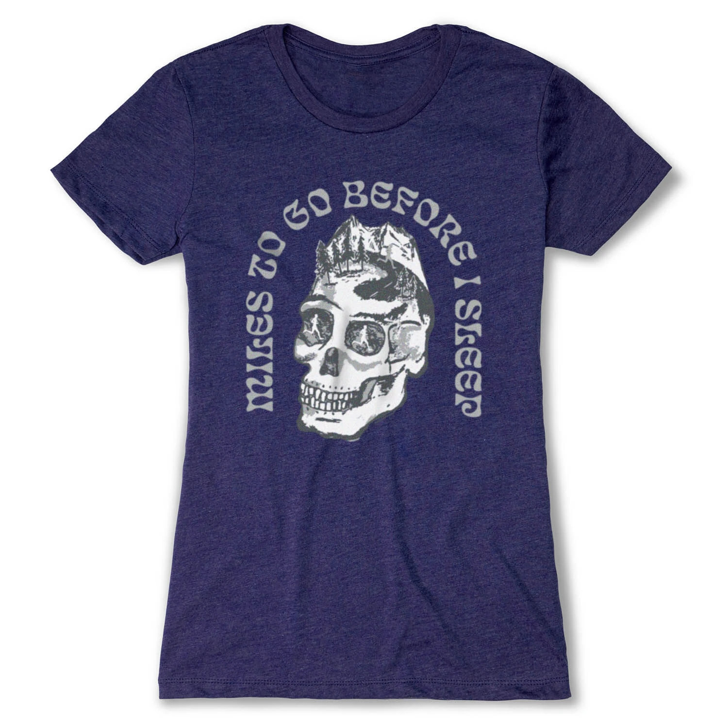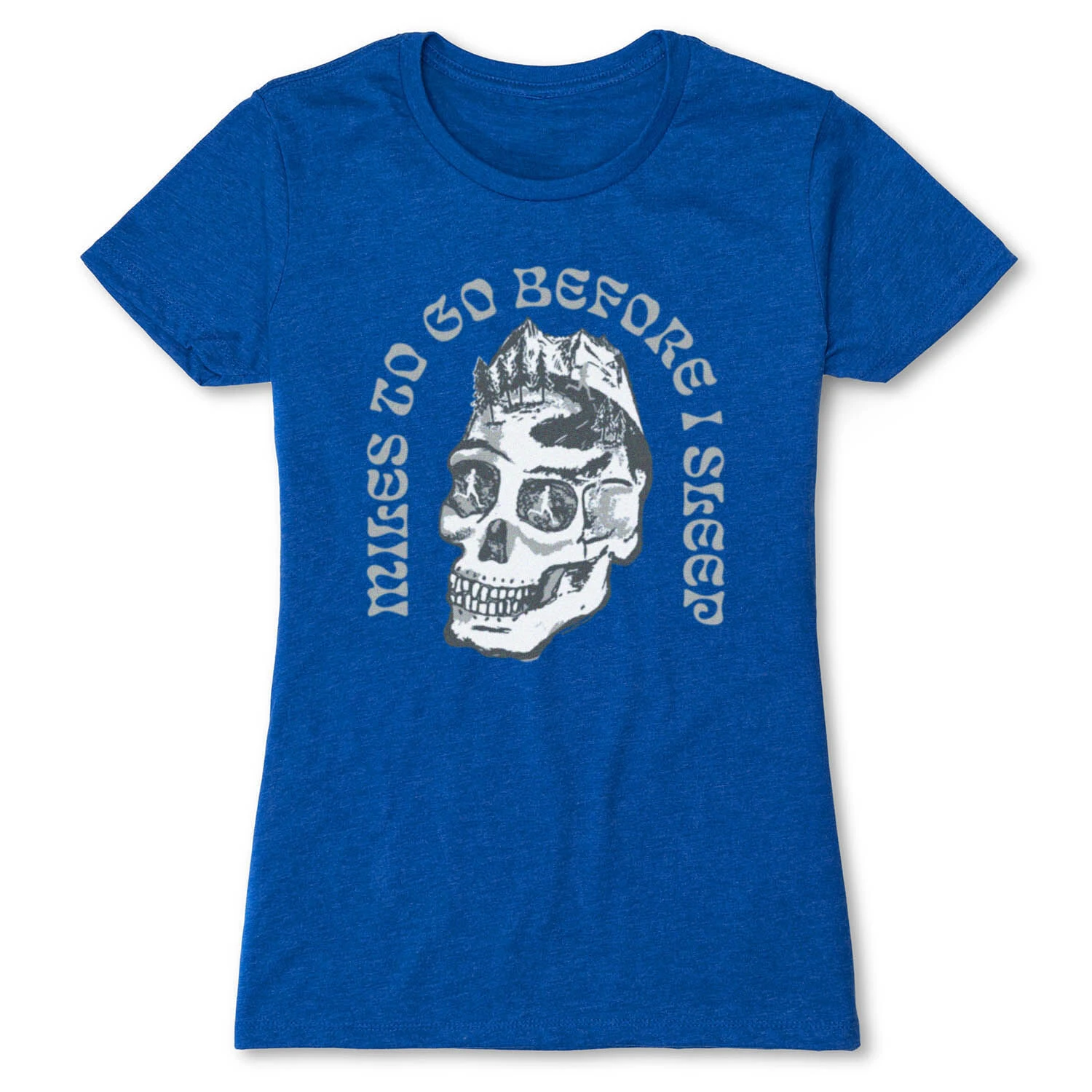 Show off your runner pride in our short sleeve tee featuring our exclusive Miles To Go Before I Sleep Skull design. The slim-fitting tee is made from soft, lightweight, and slightly heathered material. Our everyday tee looks great when paired with any choice of bottoms from leggings and jeans to shorts. This stylish short sleeve tee is perfect for everyday wear and an ideal running gift for any occasion.