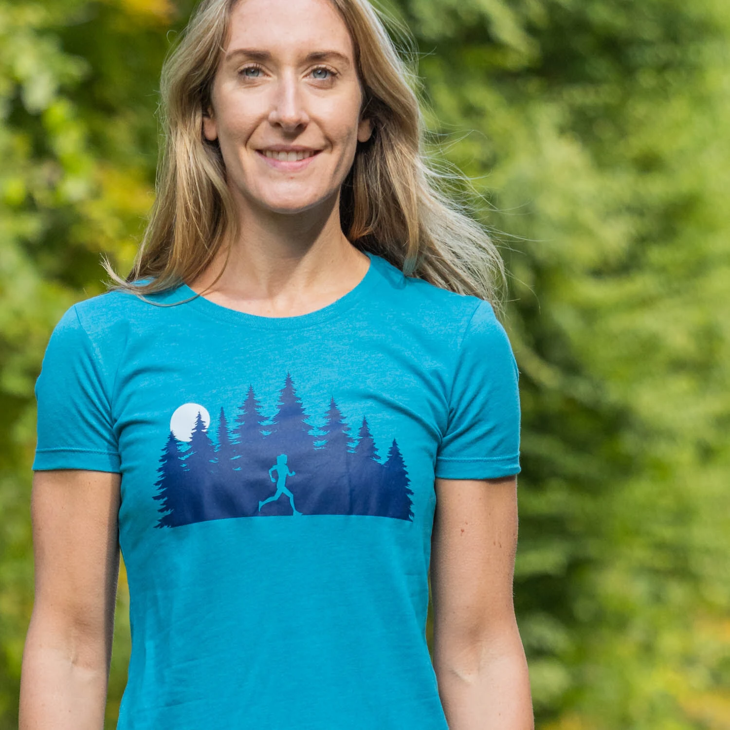 Show off your runner girl pride in our short sleeve tee featuring our exclusive Moonlit Run design. The slim-fitting tee is made from soft, lightweight, and slightly heathered material. Our everyday tee looks great when paired with any choice of bottoms from leggings and jeans to shorts. This stylish short sleeve tee is perfect for everyday wear and an ideal running gift for any occasion.