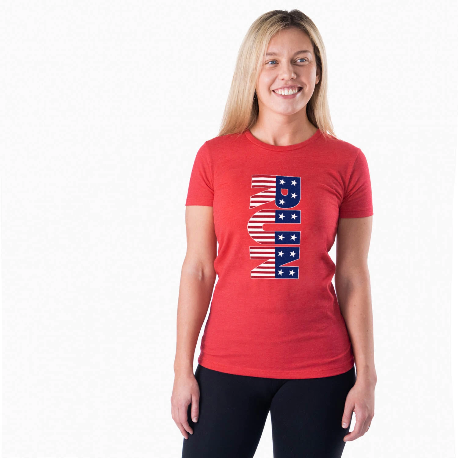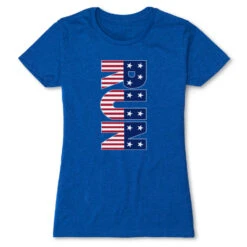 Show off your American pride in our short sleeve everyday tee featuring a one-of-a-kind Patriotic design inspired by running. The slim-fitting tee is made from soft, lightweight, and slightly heathered material. Our everyday tee looks great when paired with any choice of bottoms from leggings and jeans to shorts. This stylish short sleeve tee is perfect for everyday wear and an ideal running gift for any occasion.