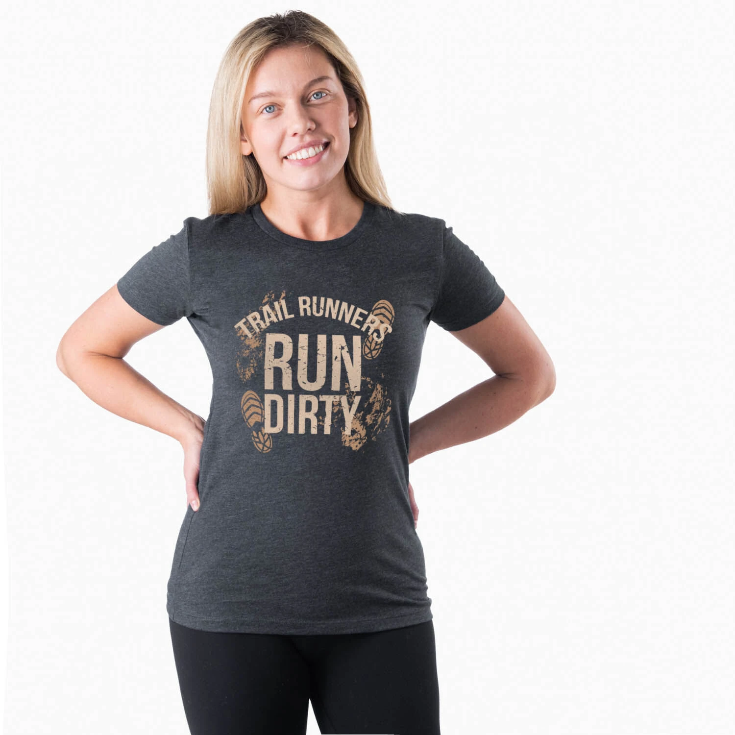 Run dirty through the trails in our short sleeve tee. The slim-fitting tee is made from soft, lightweight, and slightly heathered material. Our everyday tee looks great when paired with any choice of bottoms from leggings and jeans to shorts. This stylish short sleeve tee is perfect for everyday wear and an ideal running gift for any occasion. Any trail runner will rock this top.