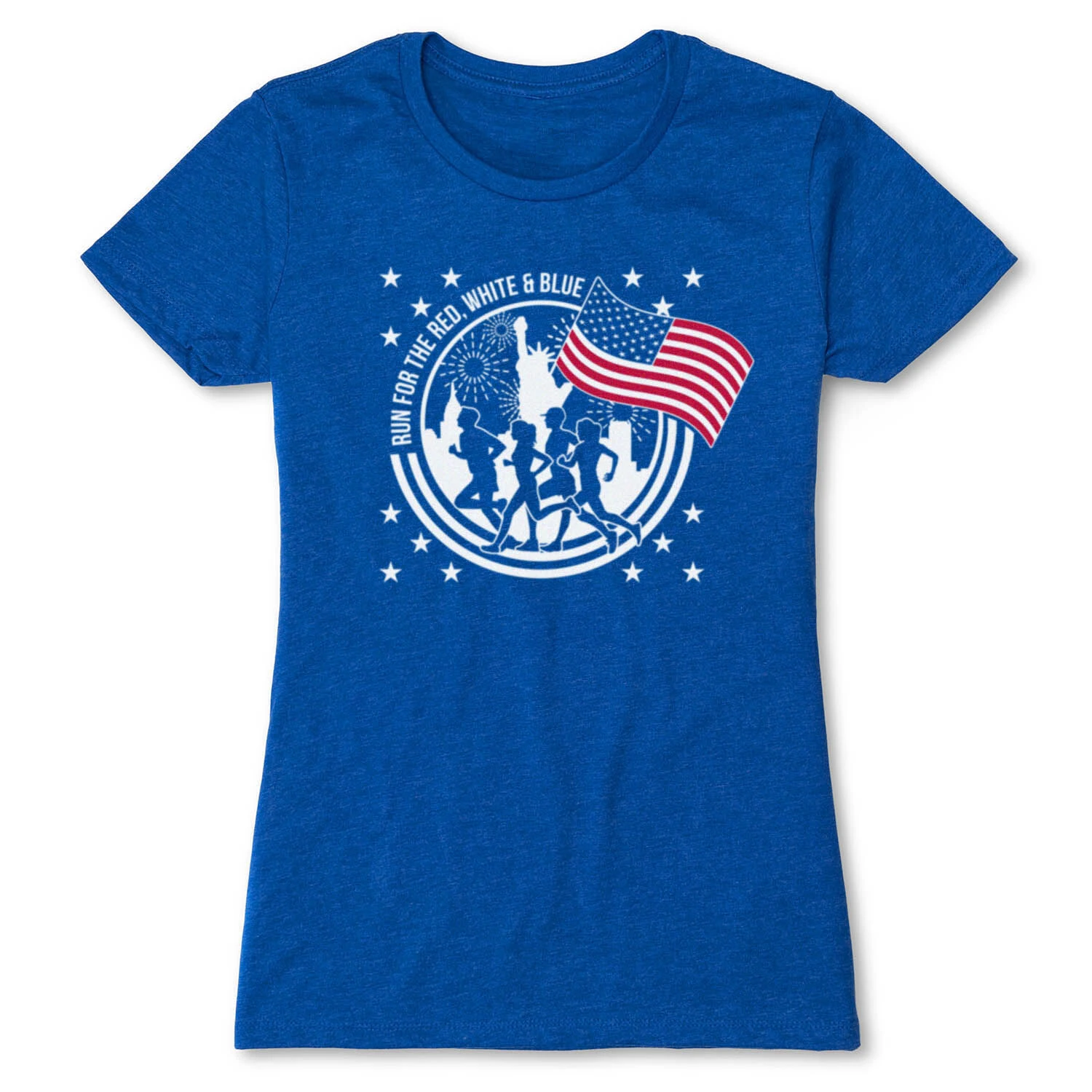 This Run for the Red, White & Blue short sleeve tee showcases a unique design that honors both running and patriotism. Made from soft and lightweight material with a slightly heathered texture, this tee features a slim fit that complements any apparel bottom, from leggings to shorts. It’s an ideal choice for casual wear as well as special patriotic events like Memorial Day or the 4th of July.