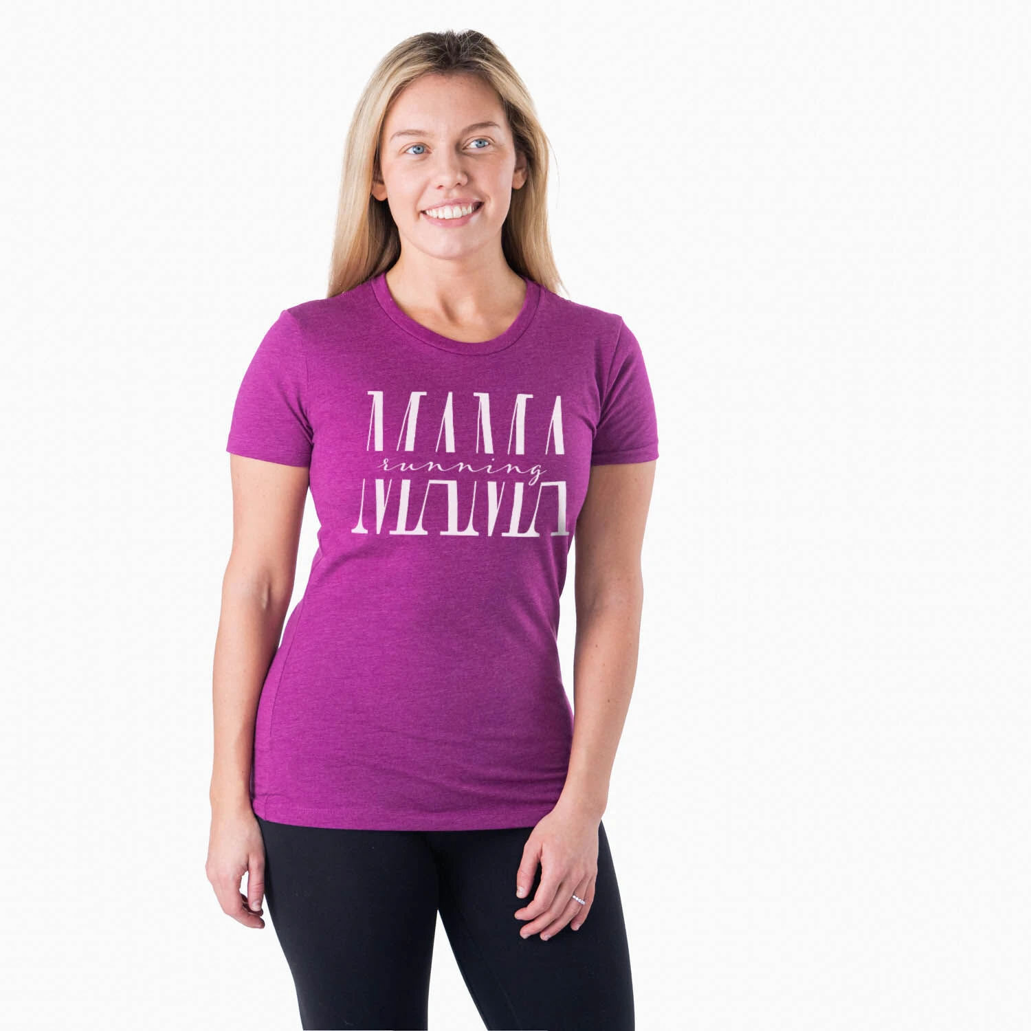 Show off your mom pride in our short sleeve tee featuring our exclusive Running Mama design. The slim-fitting tee is made from soft, lightweight, and slightly heathered material. Our everyday tee looks great when paired with any choice of bottoms from leggings and jeans to shorts. This stylish short sleeve tee is perfect for everyday wear and an ideal running gift for any runner mom.
