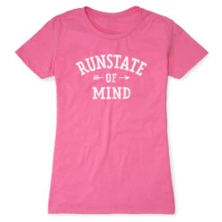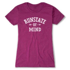 Show off your runner pride in our short sleeve tee featuring our exclusive RunState of Mind design. The slim-fitting tee is made from soft, lightweight, and slightly heathered material. Our everyday tee looks great when paired with any choice of bottoms from leggings and jeans to shorts. This stylish short sleeve tee is perfect for everyday wear and an ideal gift for any runner.