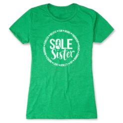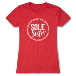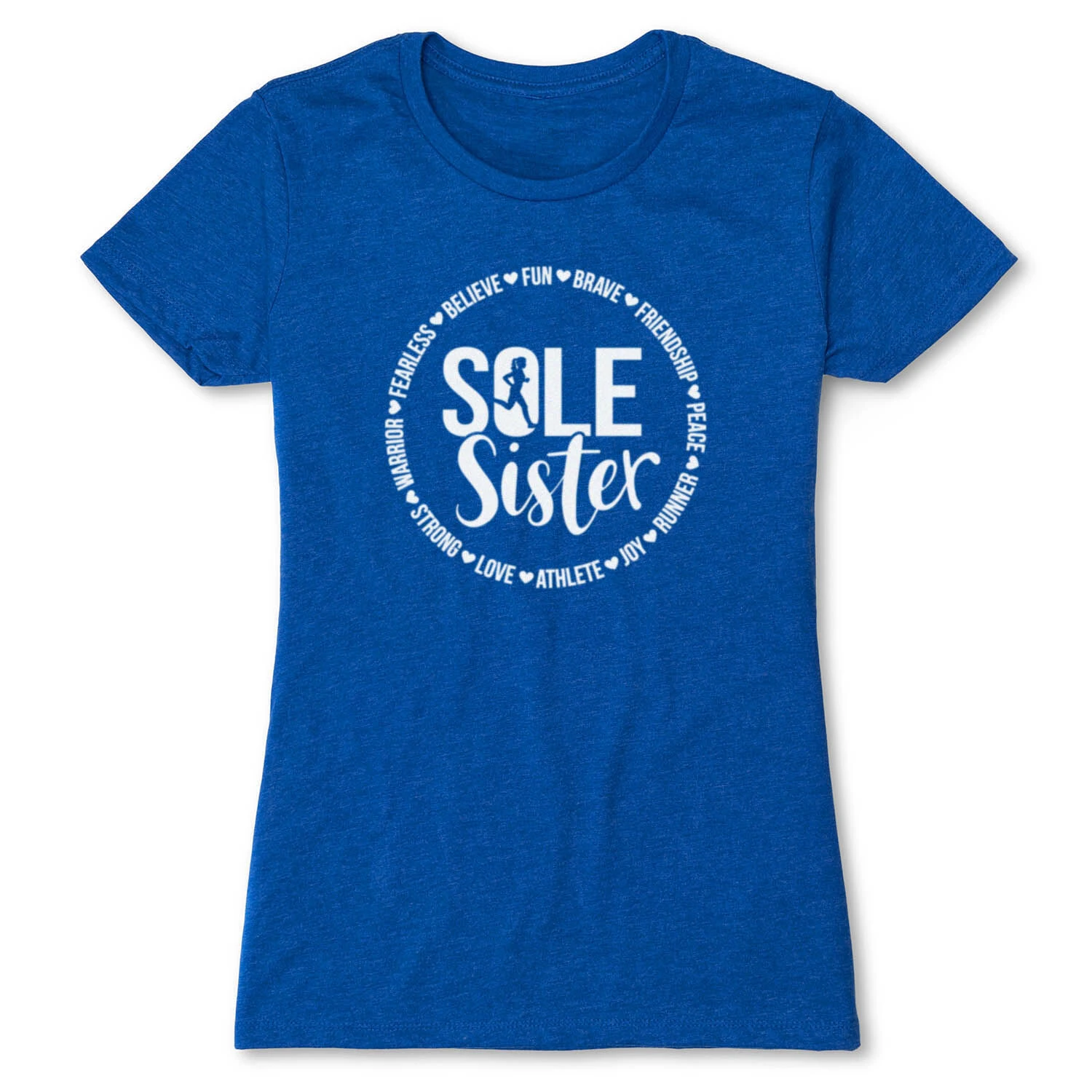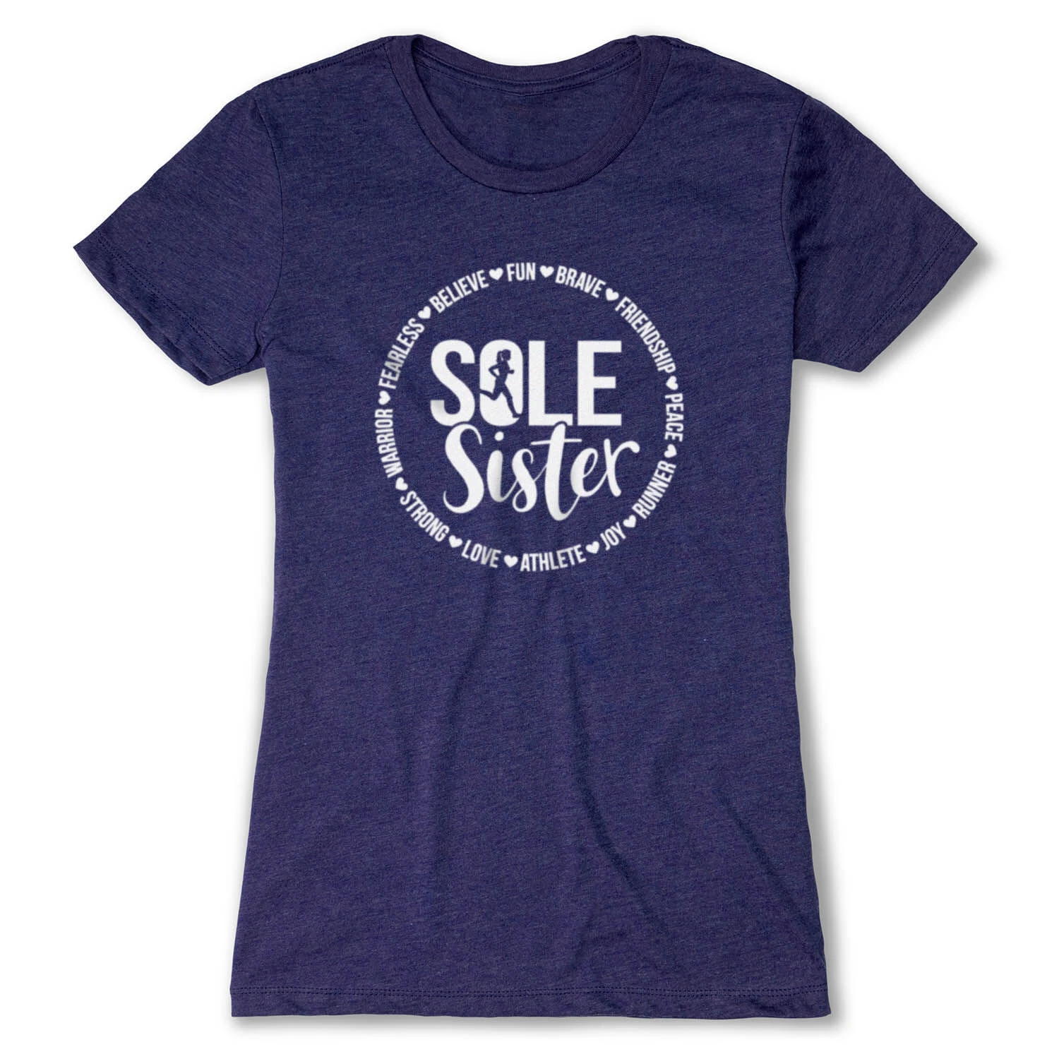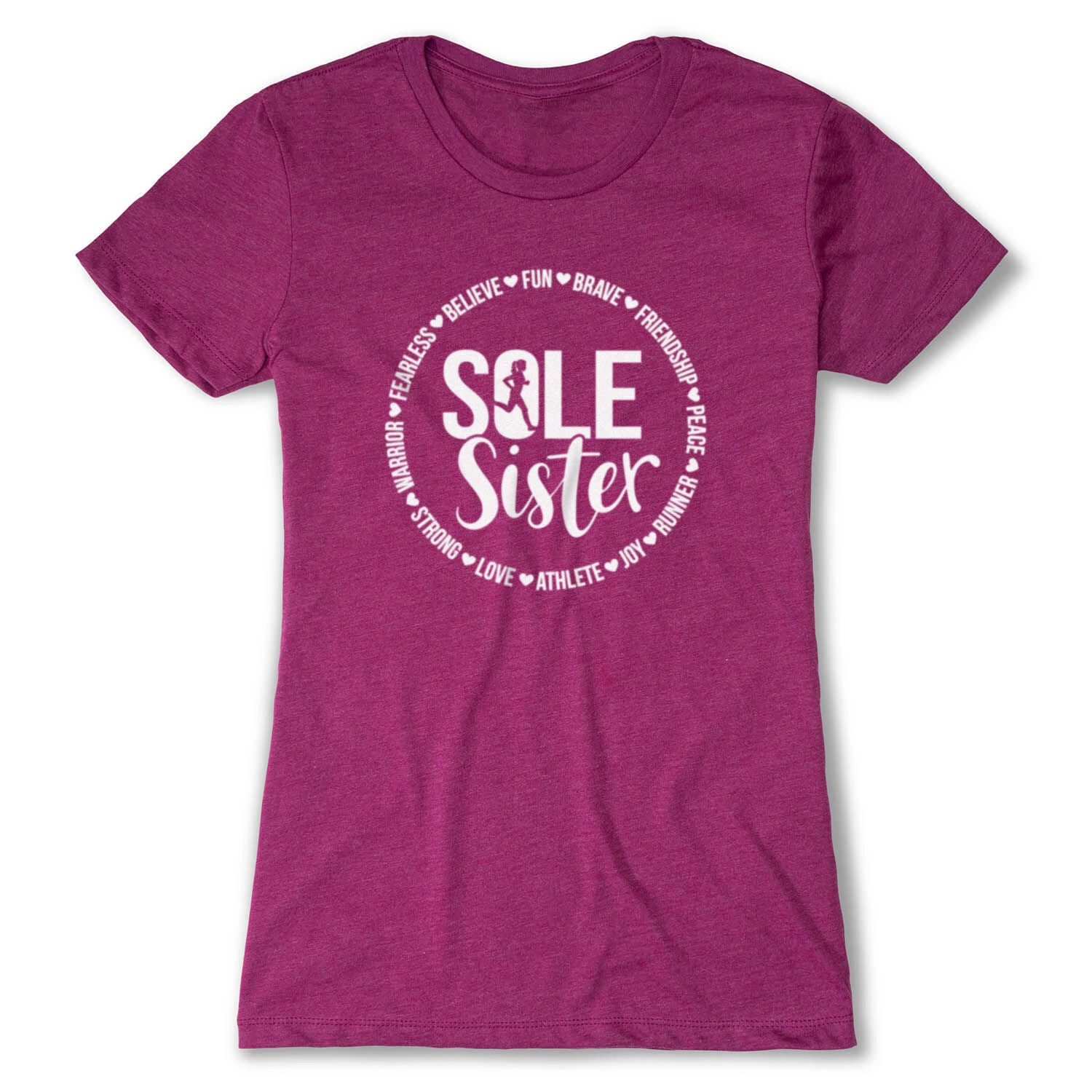 Show off your sole sister pride in our short sleeve tee. The slim-fitting tee is made from soft, lightweight, and slightly heathered material. Our everyday tee looks great when paired with any choice of bottoms from leggings and jeans to shorts. This stylish short sleeve tee is perfect for everyday wear and an ideal running gift for any occasion. Grab your best friend and run those miles together in this stylish top.