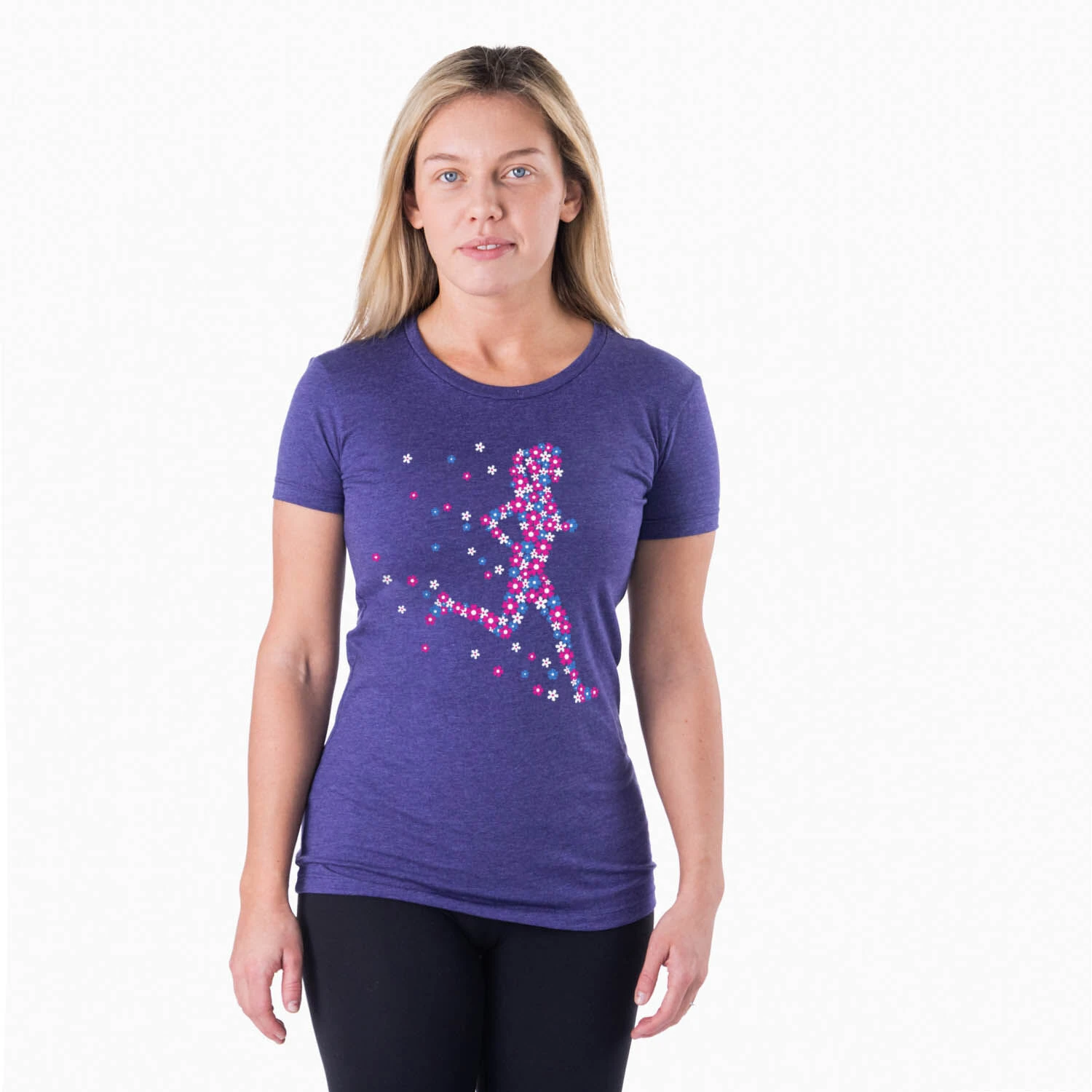Show off your runner girl pride in our short sleeve tee featuring our exclusive Flower Runner Girl design. The slim-fitting tee is made from soft, lightweight, and slightly heathered material. Our everyday tee looks great when paired with any choice of bottoms from leggings and jeans to shorts. This stylish short sleeve tee is perfect for everyday wear and an ideal gift for any runner girl.