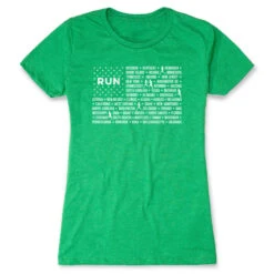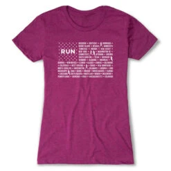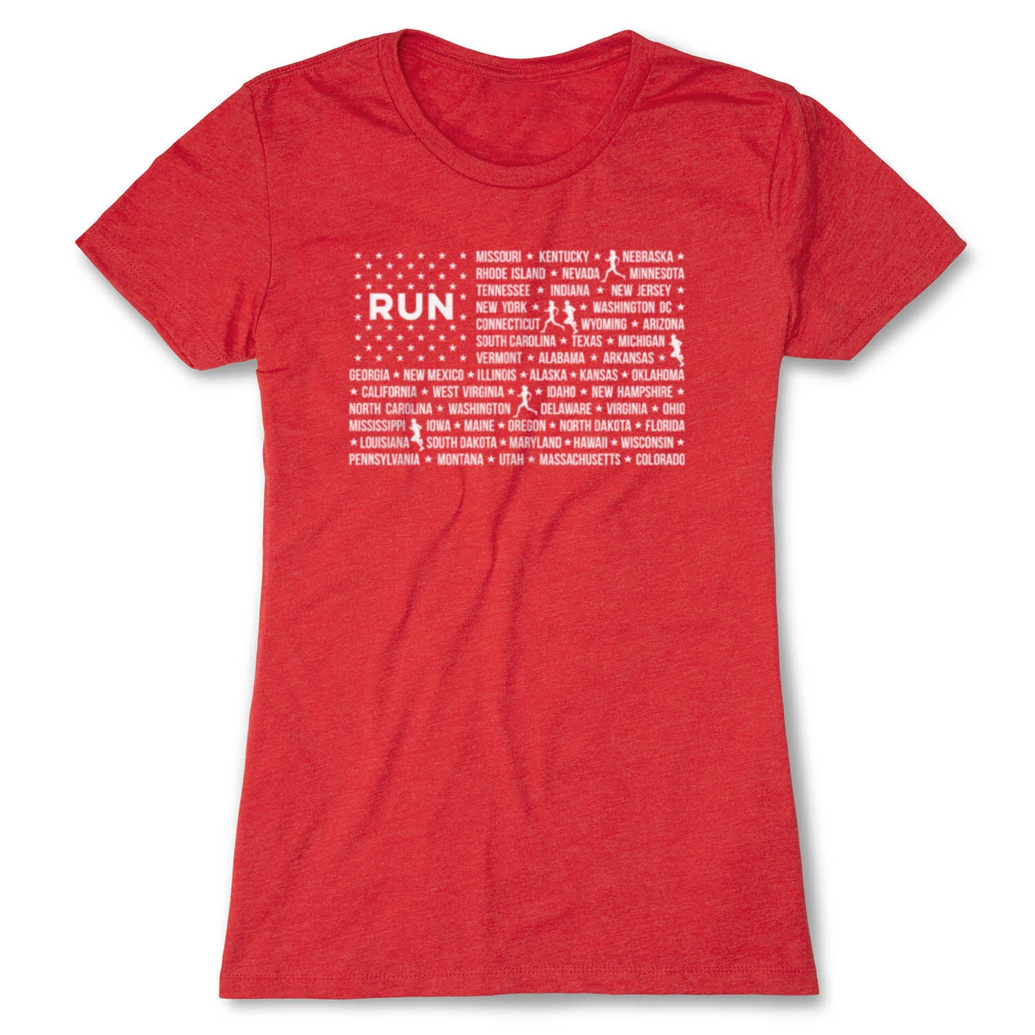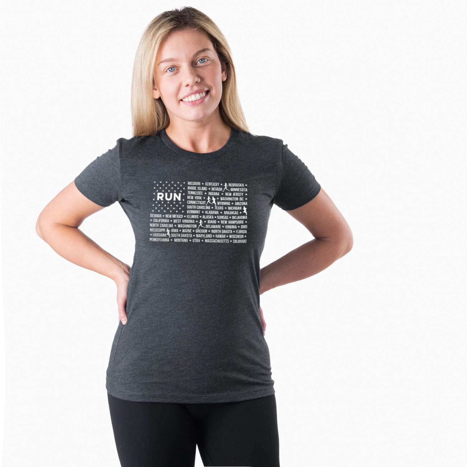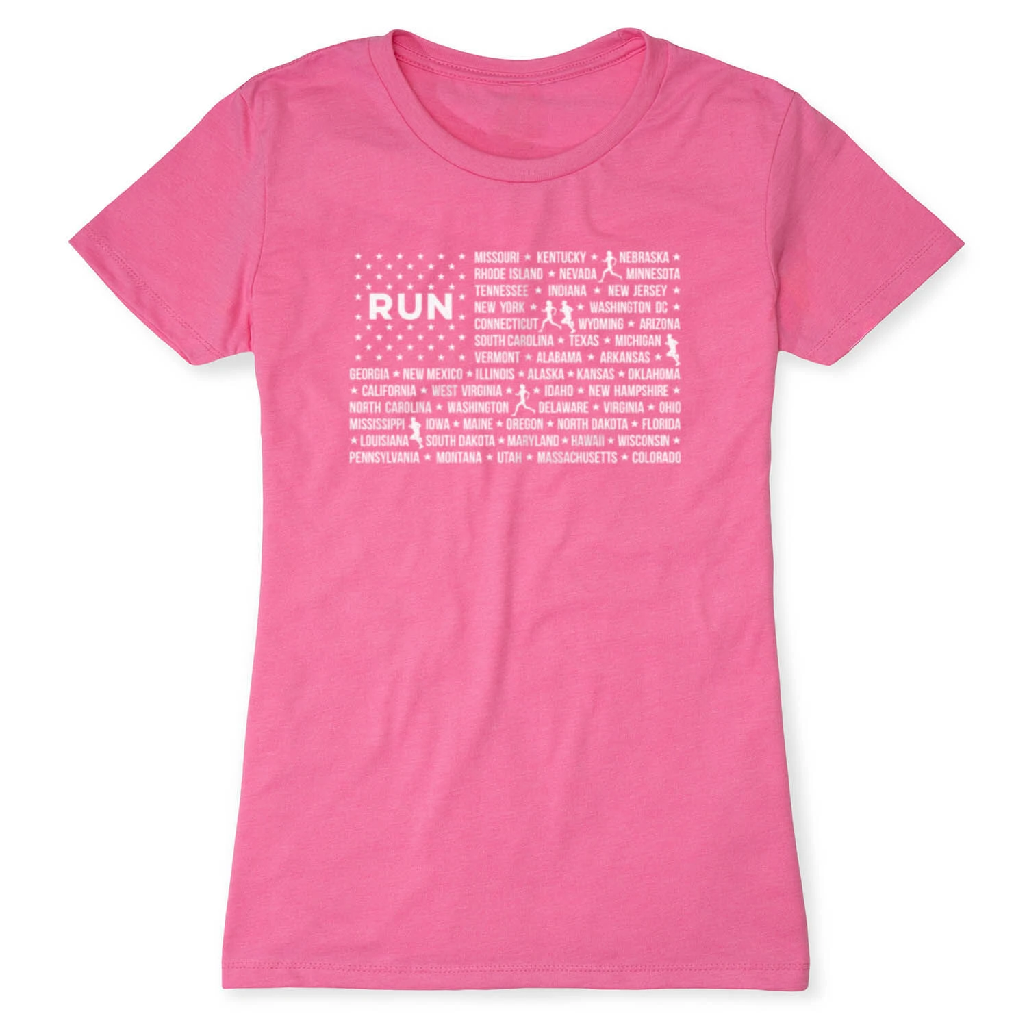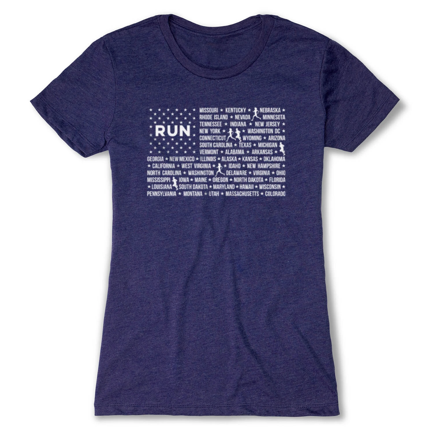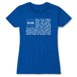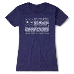 Show off your American pride in our short sleeve tee featuring a one-of-a-kind Patriotic design inspired by running. The slim-fitting tee is made from soft, lightweight, and slightly heathered material. Our everyday tee looks great when paired with any choice of bottoms from leggings and jeans to shorts. This stylish short sleeve tee is perfect for everyday wear and an ideal running gift for any occasion.
