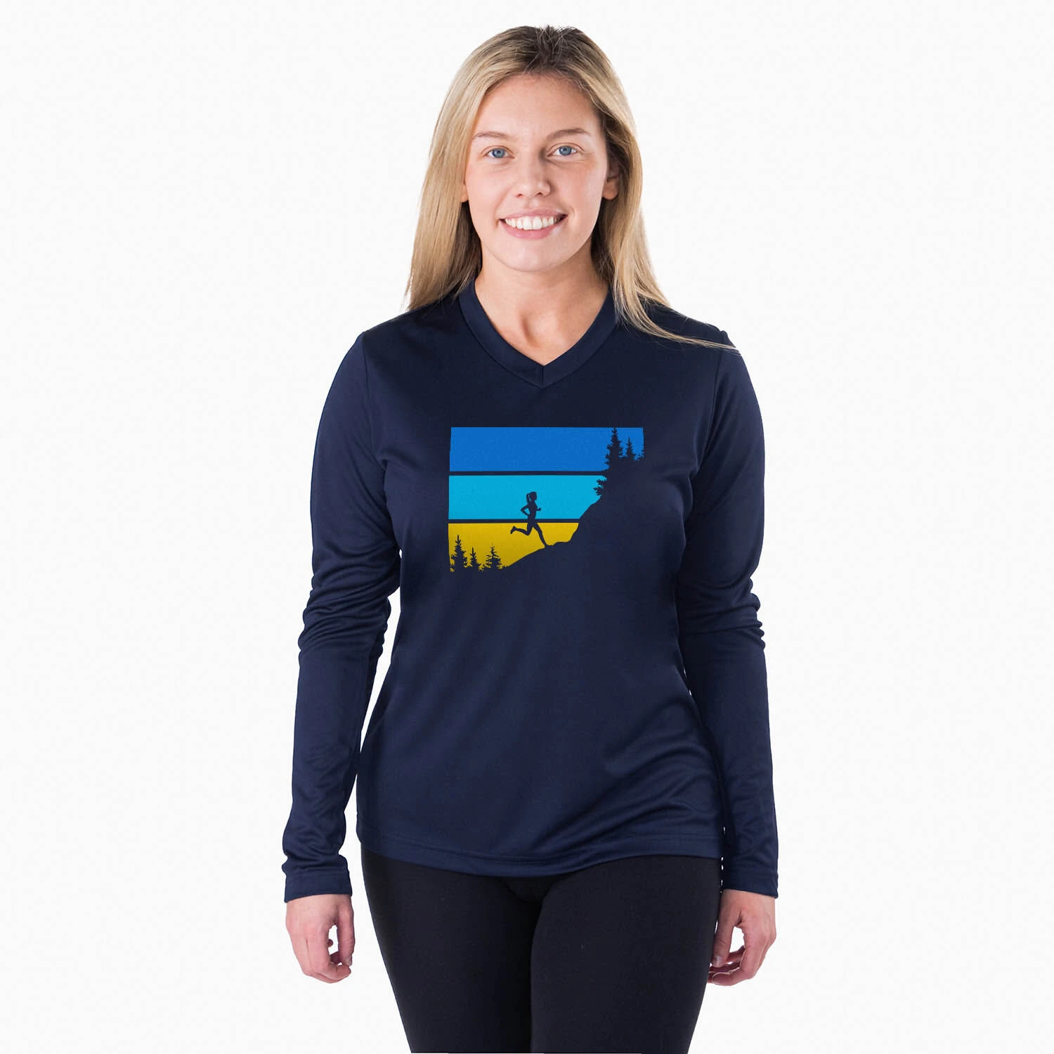 Show off your runner girl pride in our women’s long sleeve tech tee featuring our exclusive Altitude design. Our V-neck performance tee is made from 100% polyester interlock to keep runners dry and cool. The long sleeve tech tee offers a comfortable and relaxed fit that looks great with any choice of bottoms from leggings and athletic tights to jeans and longs. This stylish tech tee is perfect for everyday wear and an ideal running gift for any occasion.