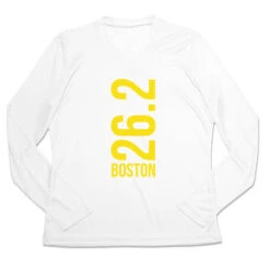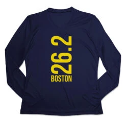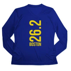 Show off your running pride in our women’s long sleeve tech tee featuring a one-of-a-kind bold design inspired by running. Our V-neck performance tee is made from 100% polyester interlock to keep runners dry and cool. The long sleeve tech tee offers a comfortable and relaxed fit that looks great with any choice of bottoms from leggings and athletic tights to jeans and longs. This stylish tech tee is perfect for everyday wear and an ideal running gift for any occasion.