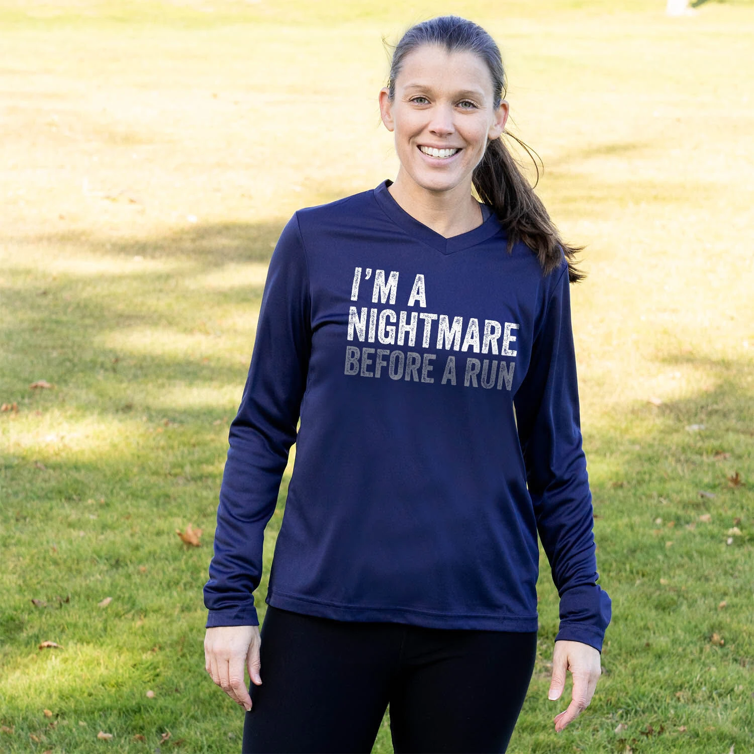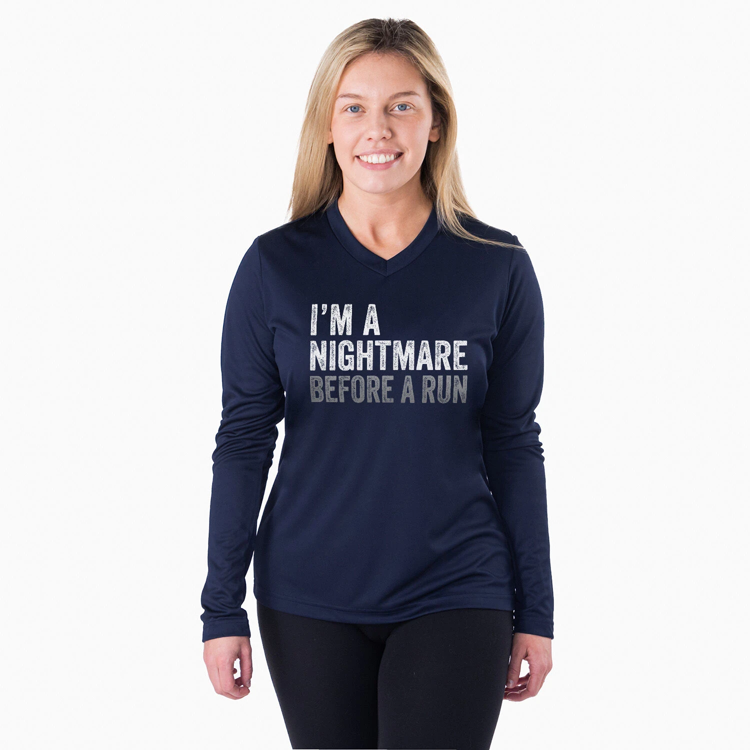 Women’s Long Sleeve Tech Tee – I’m A Nightmare Before A Run® Bold