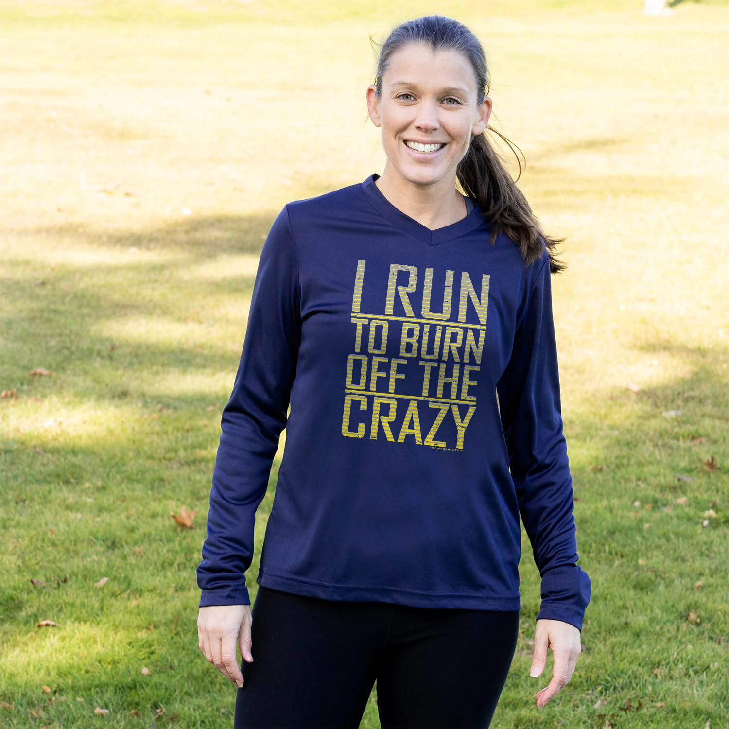 Women’s Long Sleeve Tech Tee – I Run To Burn Off The Crazy