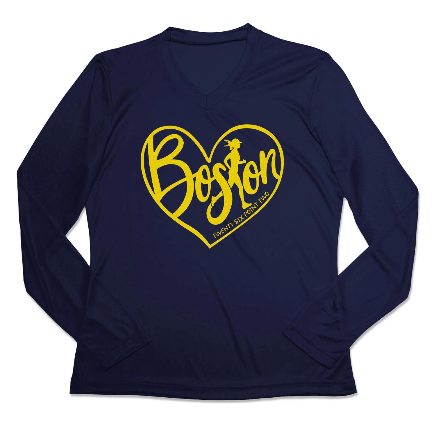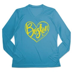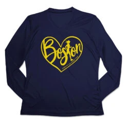 Show off your running pride in our women’s long sleeve tech tee featuring a one-of-a-kind bold design inspired by running. Our V-neck performance tee is made from 100% polyester interlock to keep runners dry and cool. The long sleeve tech tee offers a comfortable and relaxed fit that looks great with any choice of bottoms from leggings and athletic tights to jeans and longs. This stylish tech tee is perfect for everyday wear and an ideal running gift for any occasion.
