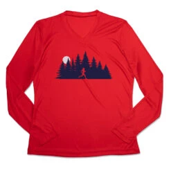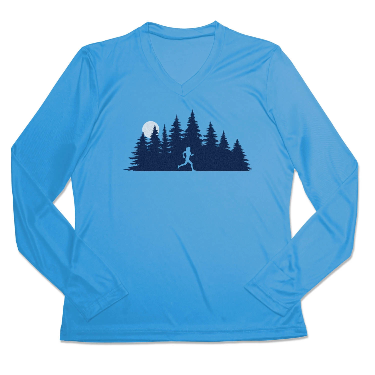 Show off your runner girl pride in our women’s long sleeve tech tee featuring our exclusive Moonlit Run design. Our V-neck performance tee is made from 100% polyester interlock to keep runners dry and cool. The long sleeve tech tee offers a comfortable and relaxed fit that looks great with any choice of bottoms from leggings and athletic tights to jeans and longs. This stylish tech tee is perfect for everyday wear and an ideal running gift for any occasion.