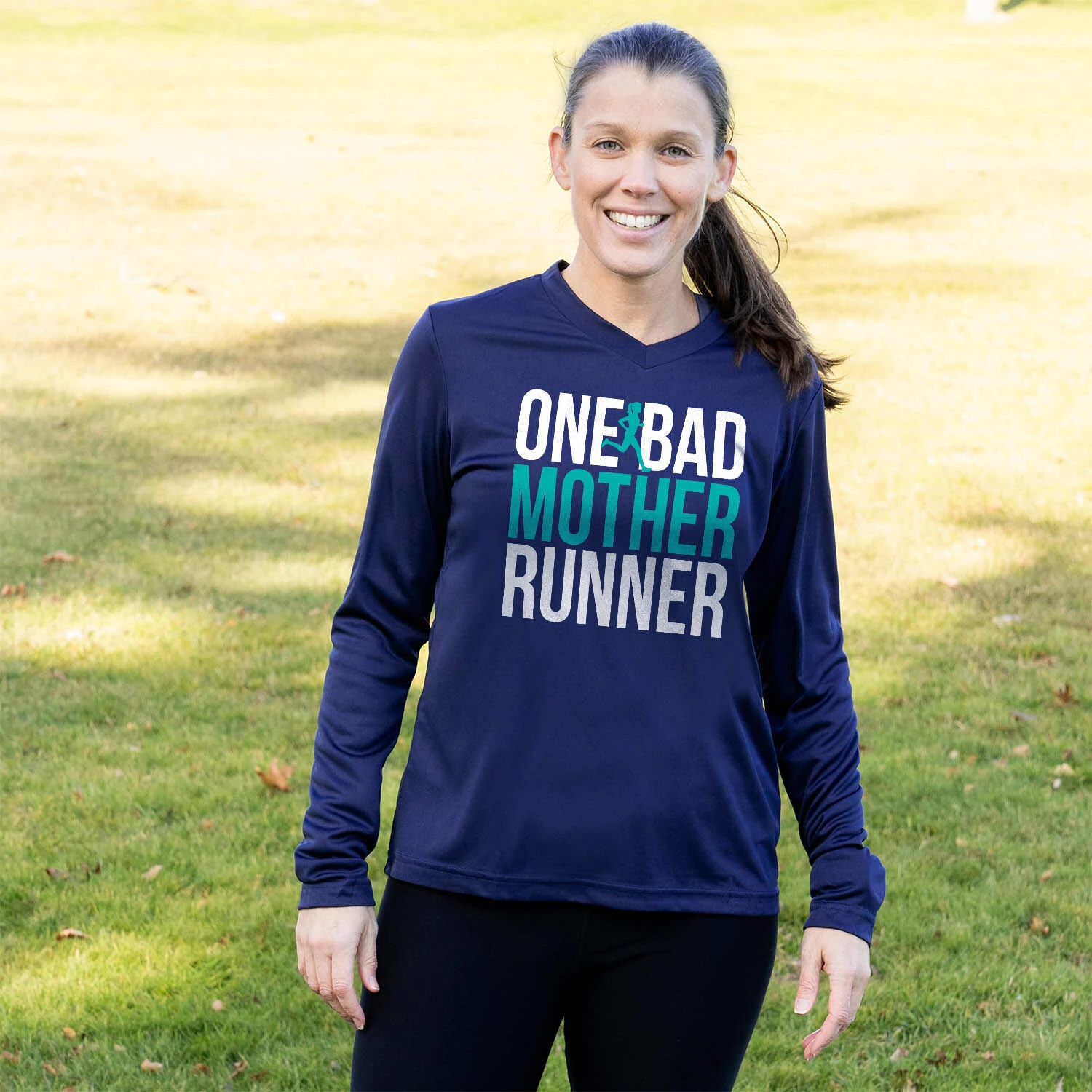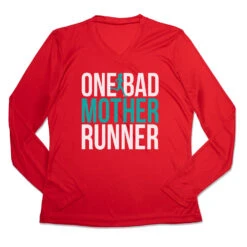 Women’s Long Sleeve Tech Tee – One Bad Mother Runner (Bold)