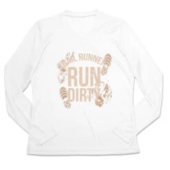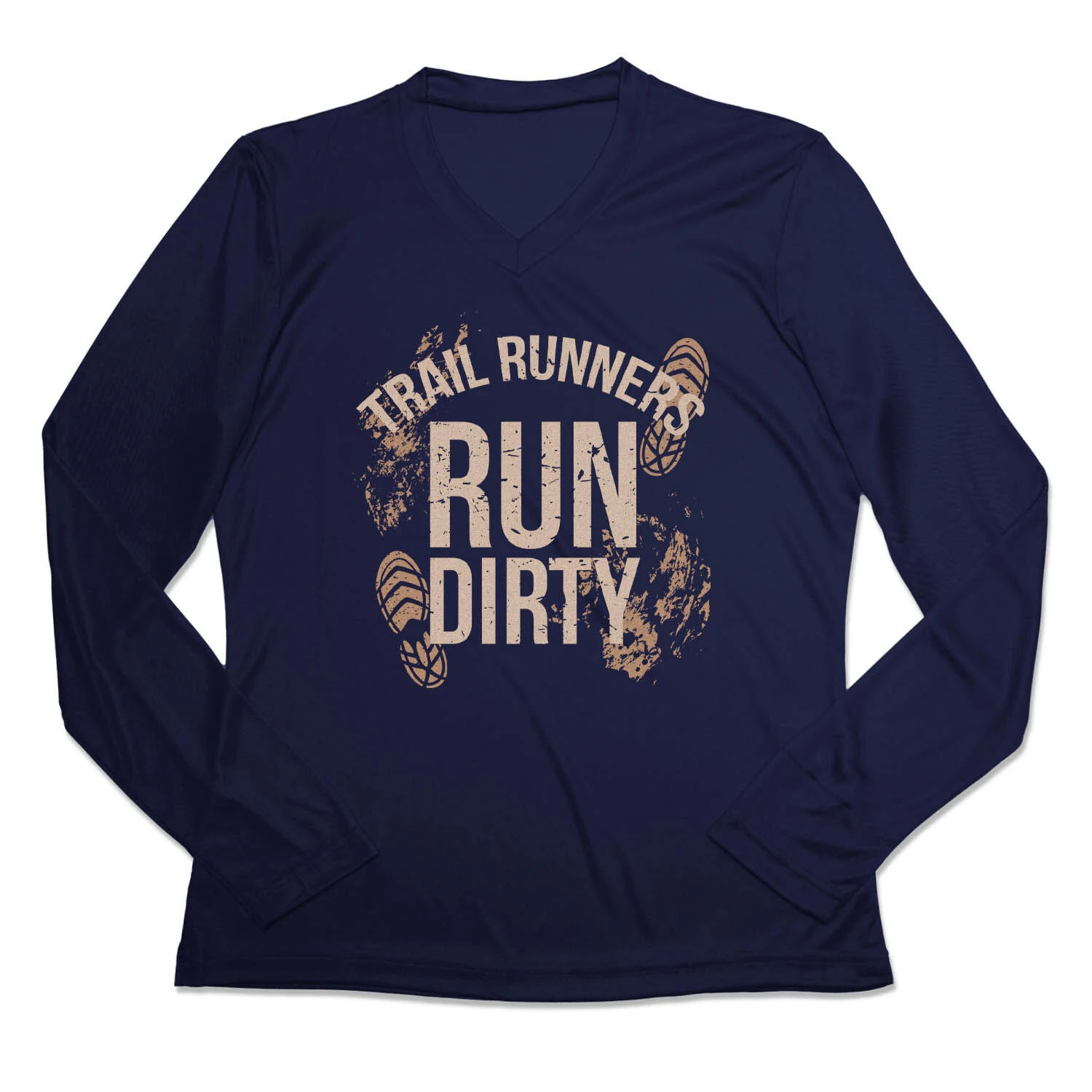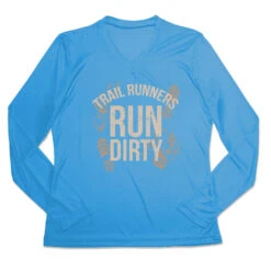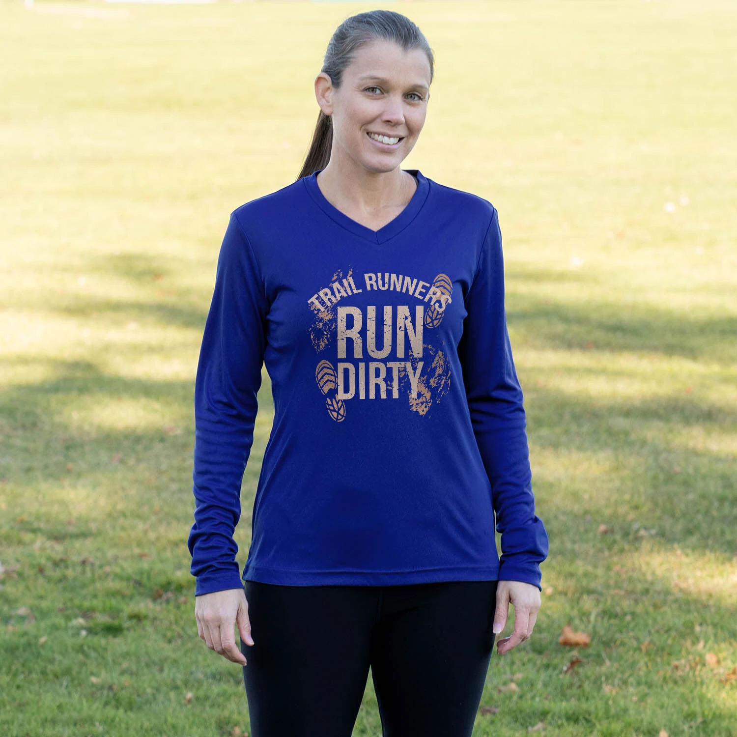 Run dirty through the trails in our women’s long sleeve tech tee. Our V-neck performance tee is made from 100% polyester interlock to keep runners dry and cool. The long sleeve tech tee offers a comfortable and relaxed fit that looks great with any choice of bottoms from leggings and athletic tights to jeans and longs. This stylish tech tee is perfect for everyday wear and an ideal running gift for any occasion. Any trail runner will rock this top.