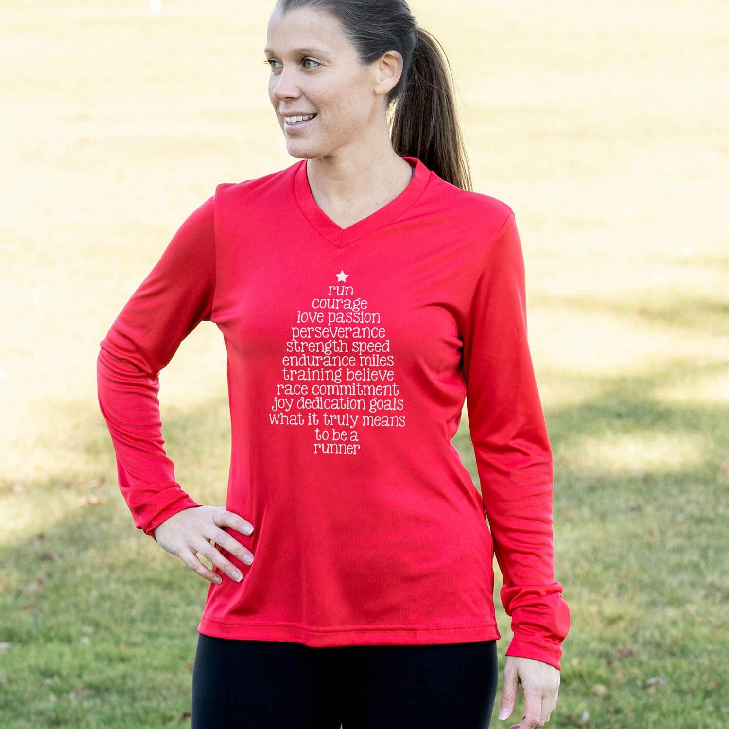 Women’s Long Sleeve Tech Tee – Runner Christmas Tree