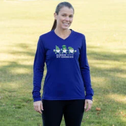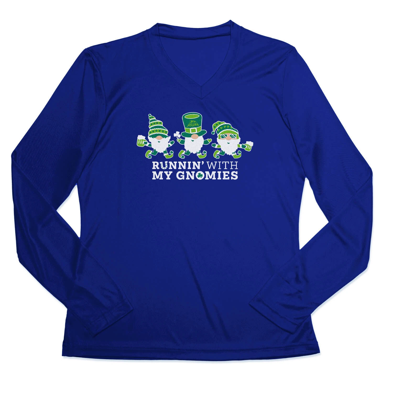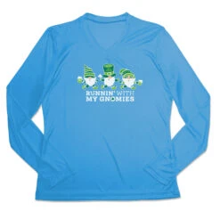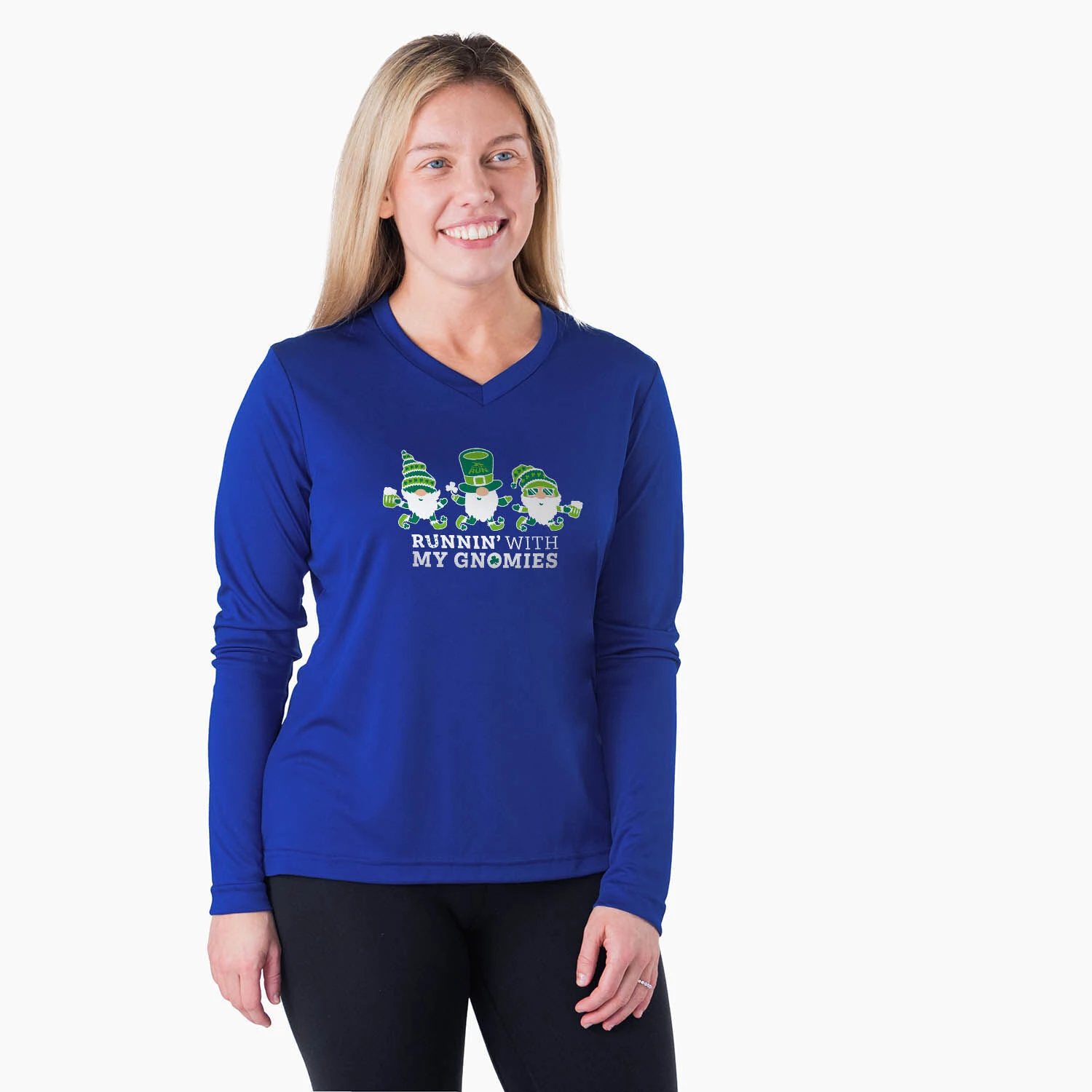Celebrate St. Patrick’s Day and get festive with your favorite running buddies (aka…gnomies) in our women’s long sleeve tech tee. Our V-neck performance tee is made from 100% polyester interlock to keep runners dry and cool. The long sleeve tech tee offers a comfortable and relaxed fit that looks great with any choice of bottoms from leggings and athletic tights to jeans and longs. This stylish tech tee is perfect for everyday wear and an ideal running gift for any occasion. Good luck to you & your runner friends – let’s get those miles in!