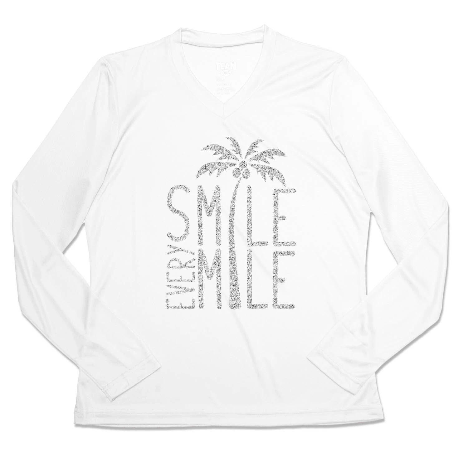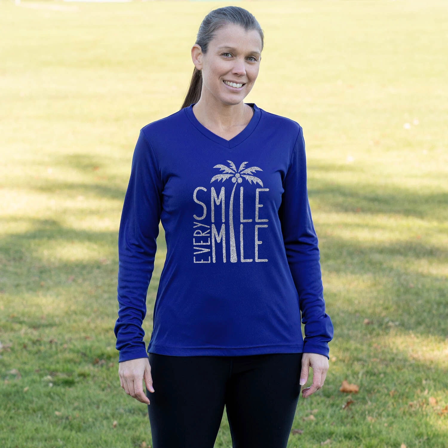 Show off your running pride in our women’s long sleeve tech tee featuring a one-of-a-kind bold design inspired by running. Our V-neck performance tee is made from 100% polyester interlock to keep runners dry and cool. The long sleeve tech tee offers a comfortable and relaxed fit that looks great with any choice of bottoms from leggings and athletic tights to jeans and longs. This stylish tech tee is perfect for everyday wear and an ideal running gift for any occasion.