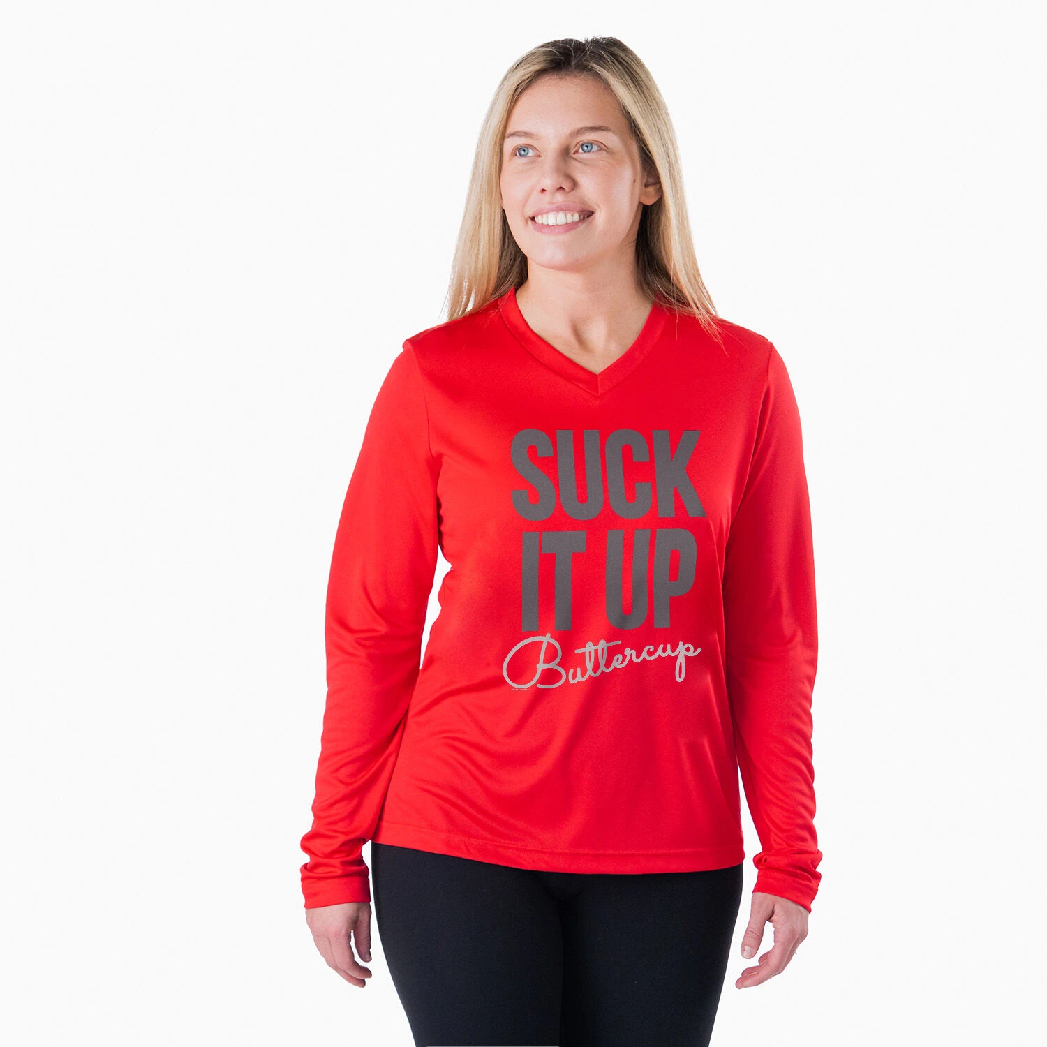 Women’s Long Sleeve Tech Tee – Suck It Up Buttercup