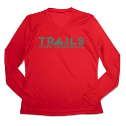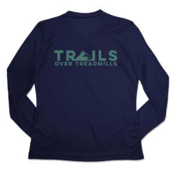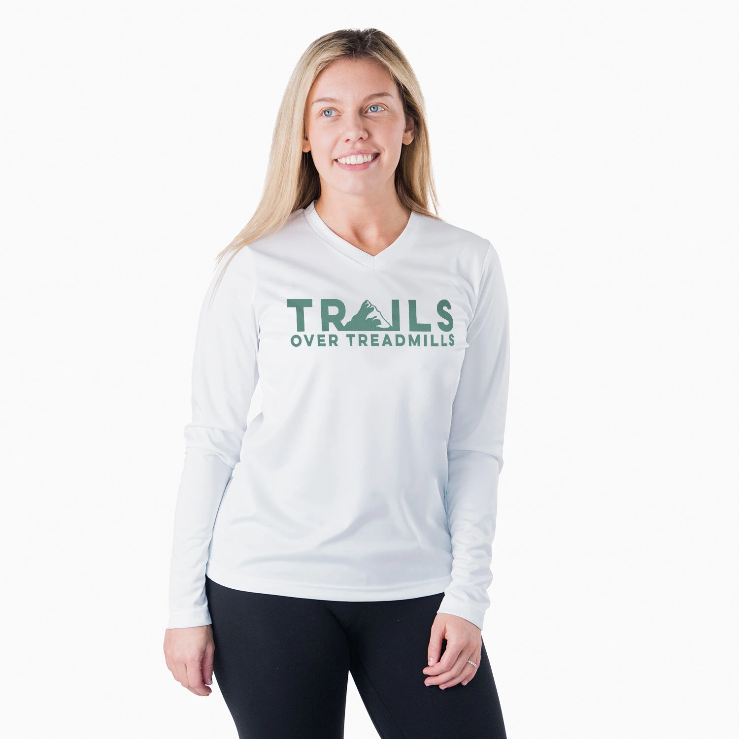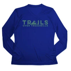 Make trail running even cooler in our women’s long sleeve tech tee. Our V-neck performance tee is made from 100% polyester interlock to keep runners dry and cool. The long sleeve tech tee offers a comfortable and relaxed fit that looks great with any choice of bottoms from leggings and athletic tights to jeans and longs. This stylish tech tee is perfect for everyday wear and an ideal running gift for any occasion. Perfect for runners who prefer the trails over treadmills.