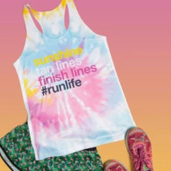 Show off your running pride in our performance tank top with our one-of-a-kind tie dye running design, any runner would love this top for any run or race. The racerback performance tank top is made from 100% moisture-wicking/antimicrobial polyester and has a relaxed fit so runners are comfortable during all runs and activities, even when the weather is hot and the run is warm. A great running gift for anyone who enjoys post-run presents, it’s perfect for the holidays or any occasion – and sure to be a favorite for any runner.
