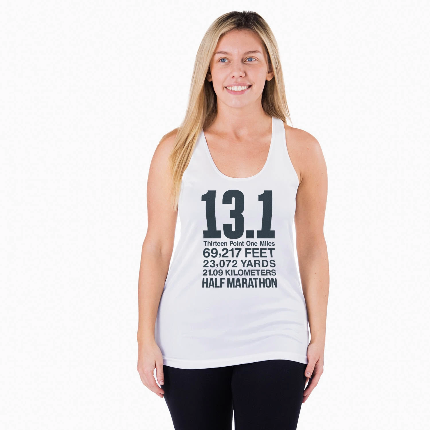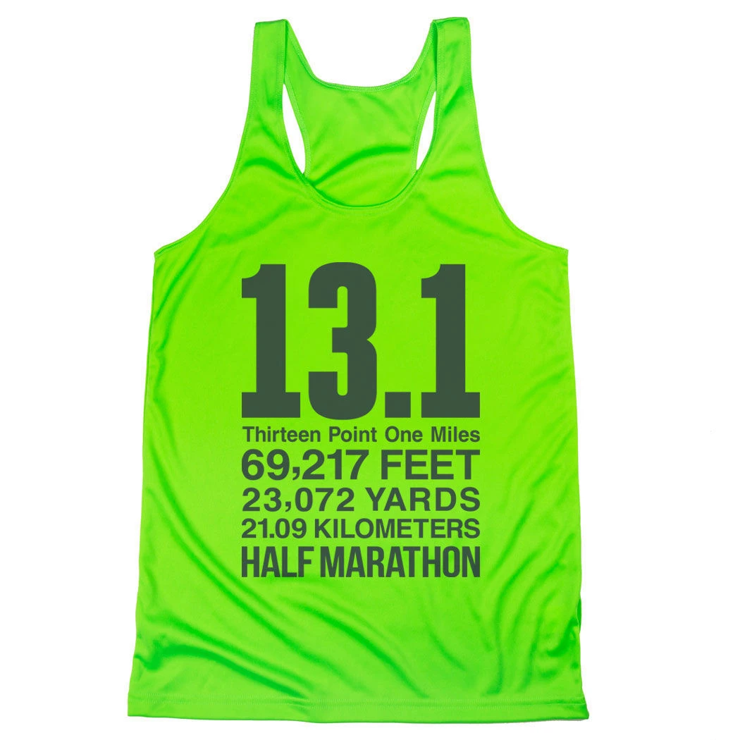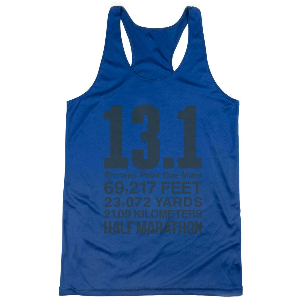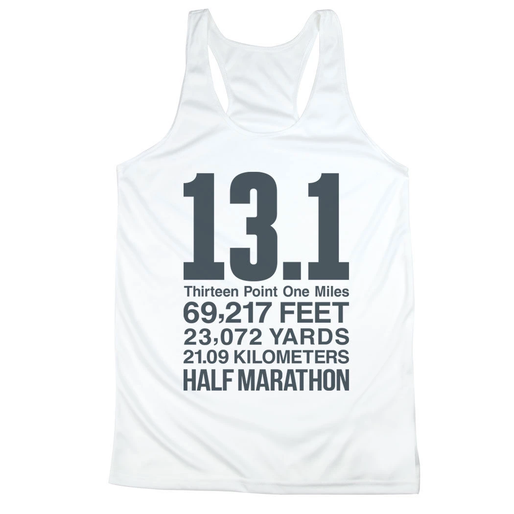 Show off your half marathoner pride in our women’s racerback performance tank top featuring our exclusive 13.1 Math Miles design. Our racerback scoop neck tank is made from 100% polyester to keep runners dry and cool. This performance tank offers a comfortable and A-line fit that pairs great with any choice of bottoms from leggings and athletic tights to jeans and shorts. This stylish tank is perfect for everyday wear and an ideal running gift for any occasion.