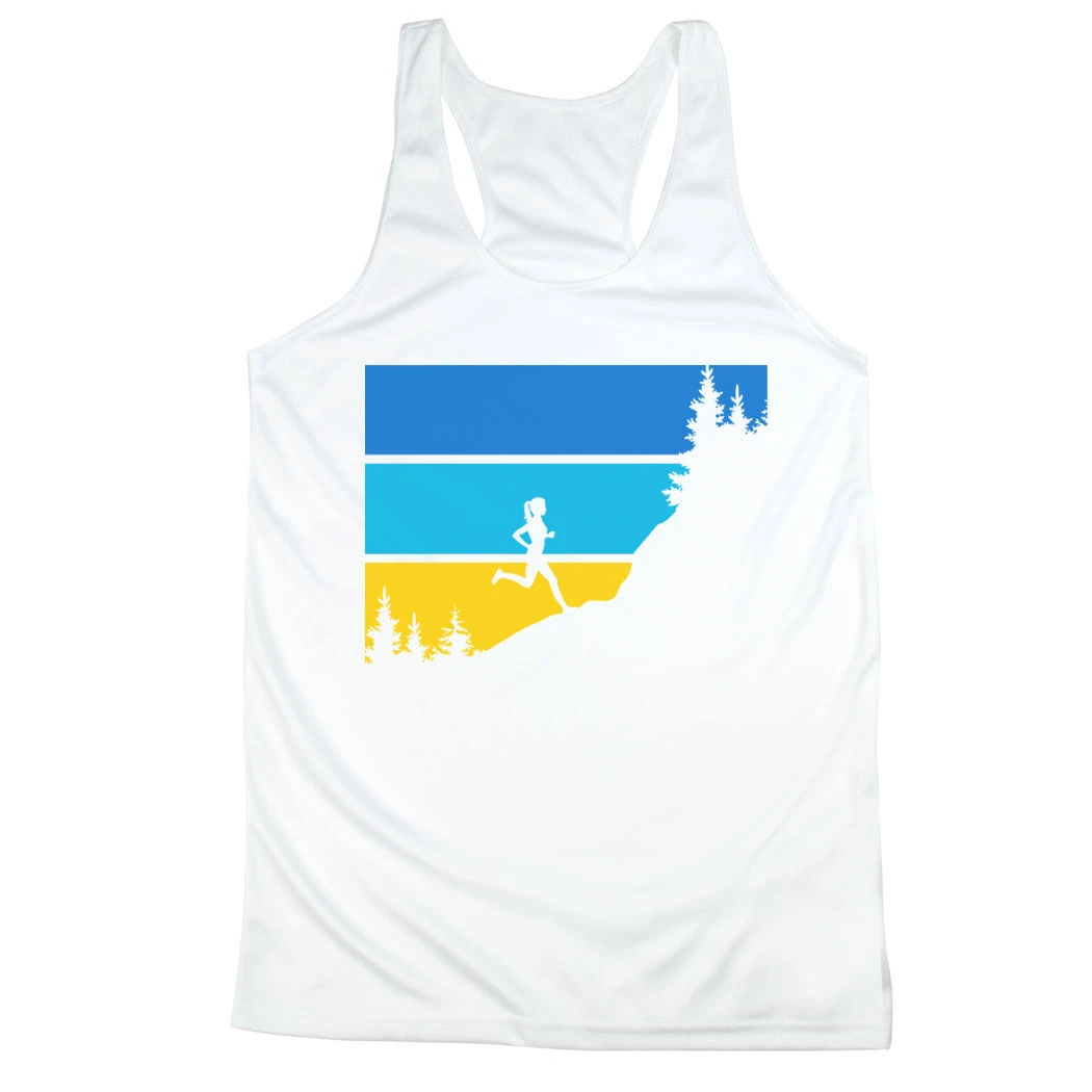Show off your runner girl pride in our women’s racerback performance tank top featuring our exclusive Altitude design. Our racerback scoop neck tank is made from 100% polyester to keep runners dry and cool. This performance tank offers a comfortable and A-line fit that pairs great with any choice of bottoms from leggings and athletic tights to jeans and shorts. This stylish tank is perfect for everyday wear and an ideal running gift for any occasion.