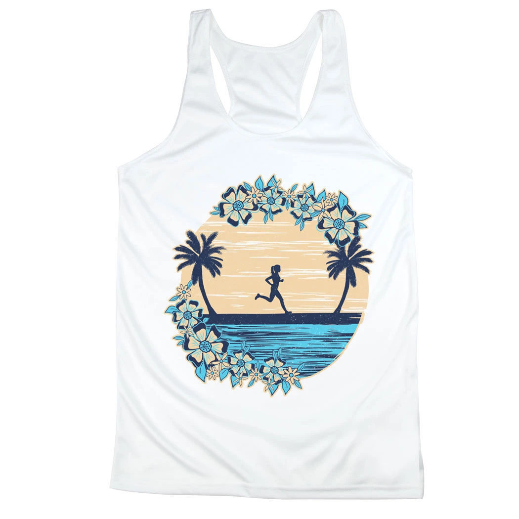 Show off your runner girl pride in our women’s racerback performance tank top featuring a one-of-a-kind Beach Runner Girl design. Our racerback scoop neck tank is made from 100% polyester to keep runners dry and cool. This performance tank offers a comfortable and A-line fit that pairs great with any choice of bottoms from leggings and athletic tights to jeans and shorts. This stylish tank is perfect for everyday wear and an ideal running gift for any occasion. Enjoy your beach runs in the most comfortable tank for runners.