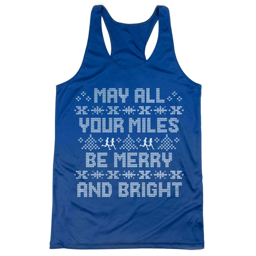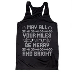 Get in the holiday spirit in our women’s racerback performance tank top featuring a one-of-a-kind Christmas design inspired by running. Our racerback scoop neck tank is made from 100% polyester to keep runners dry and cool. This performance tank offers a comfortable and A-line fit that pairs great with any choice of bottoms from leggings and athletic tights to jeans and shorts. This stylish tank is perfect for everyday wear and an ideal running gift for any occasion. Any runner would love this for any holiday race.