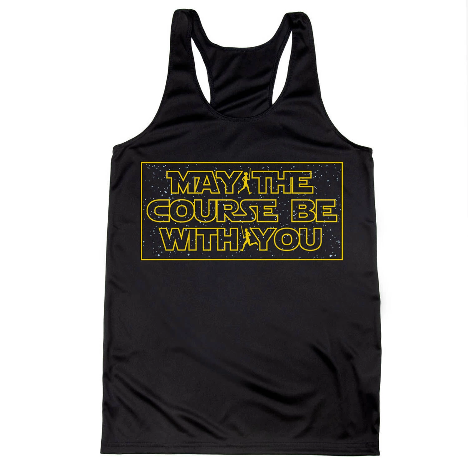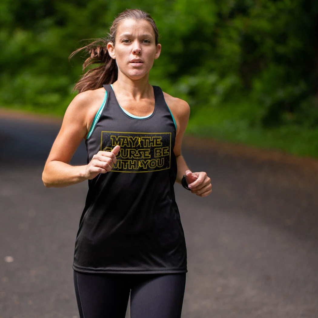 May the Course Be with You in our women’s racerback performance tank top featuring an exclusive running design. Our racerback scoop neck tank is made from 100% polyester to keep runners dry and cool. This performance tank offers a comfortable and A-line fit that pairs great with any choice of bottoms from leggings and athletic tights to jeans and shorts. This stylish tank is perfect for magical races, everyday wear, and an ideal running gift for any occasion.
