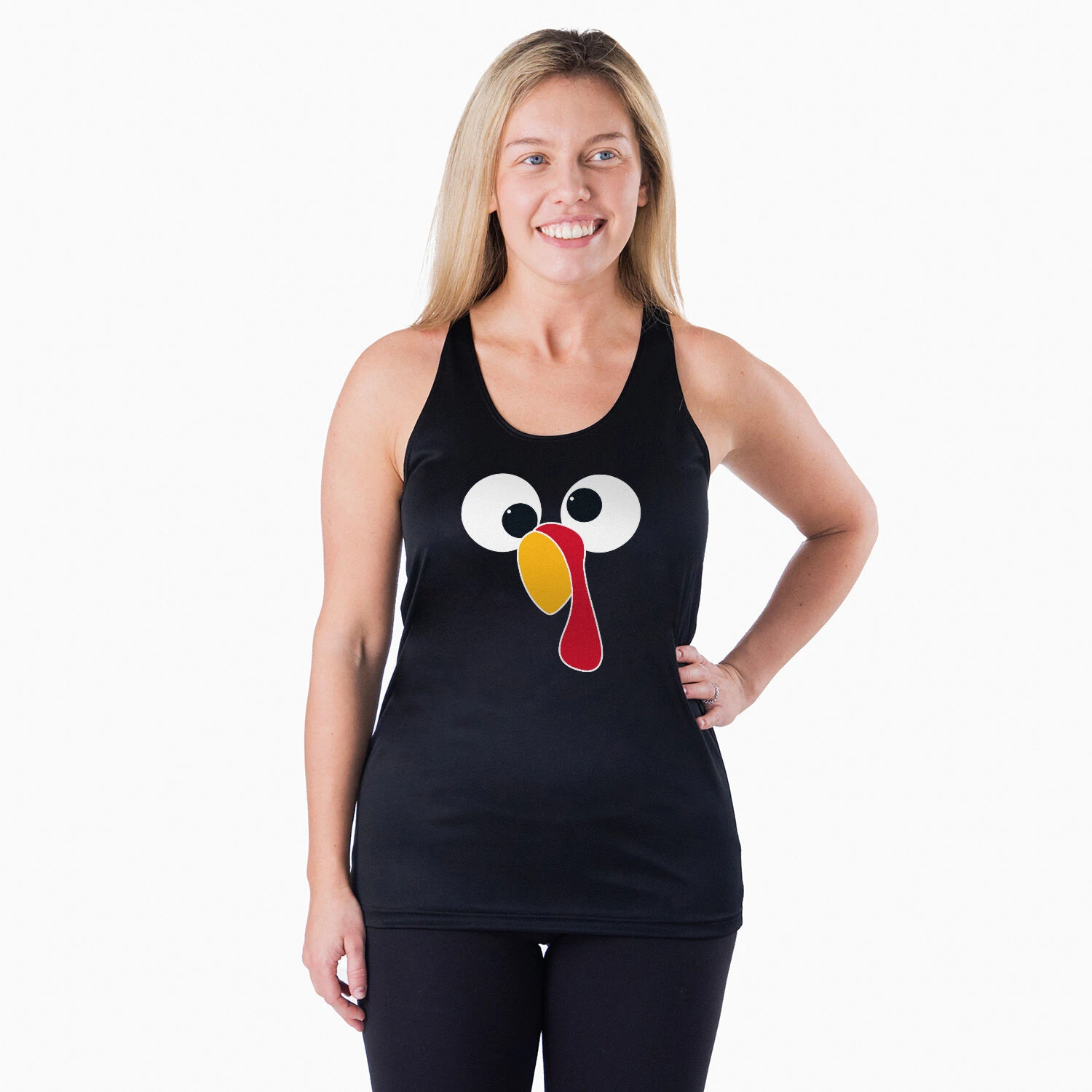 Get in the holiday spirit in our women’s racerback performance tank top featuring a one-of-a-kind Thanksgiving design inspired by running. Our racerback scoop neck tank is made from 100% polyester to keep runners dry and cool. This performance tank offers a comfortable and A-line fit that pairs great with any choice of bottoms from leggings and athletic tights to jeans and shorts. This stylish tank is perfect for everyday wear and an ideal running gift for any occasion. Any runner would love this for any turkey race.